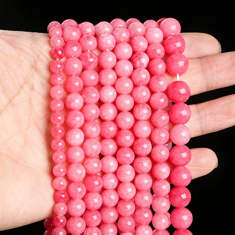 6 8 10mm Dyed Rose Red Color Chalcedony Bead Round Loose Spacer for Jewelry Making Diy Necklace Bracelet Accessory Finding 15"
