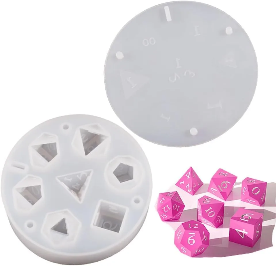DIY 7-Cavity Dice Molds - Sharp Edge Silicone for Custom Resin Dice, Perfect Gift for RPG