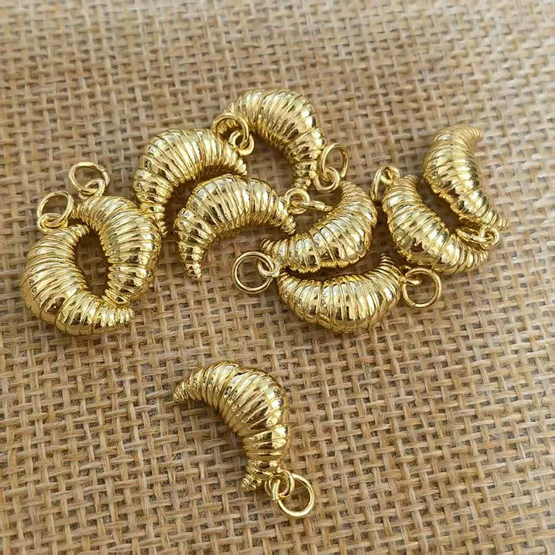 Trendy Croissant Bread Cake Food Charm Pendant,Real 18K Gold Plated Necklace Bracelet Making Jewelry Findings Daily Supplies S14