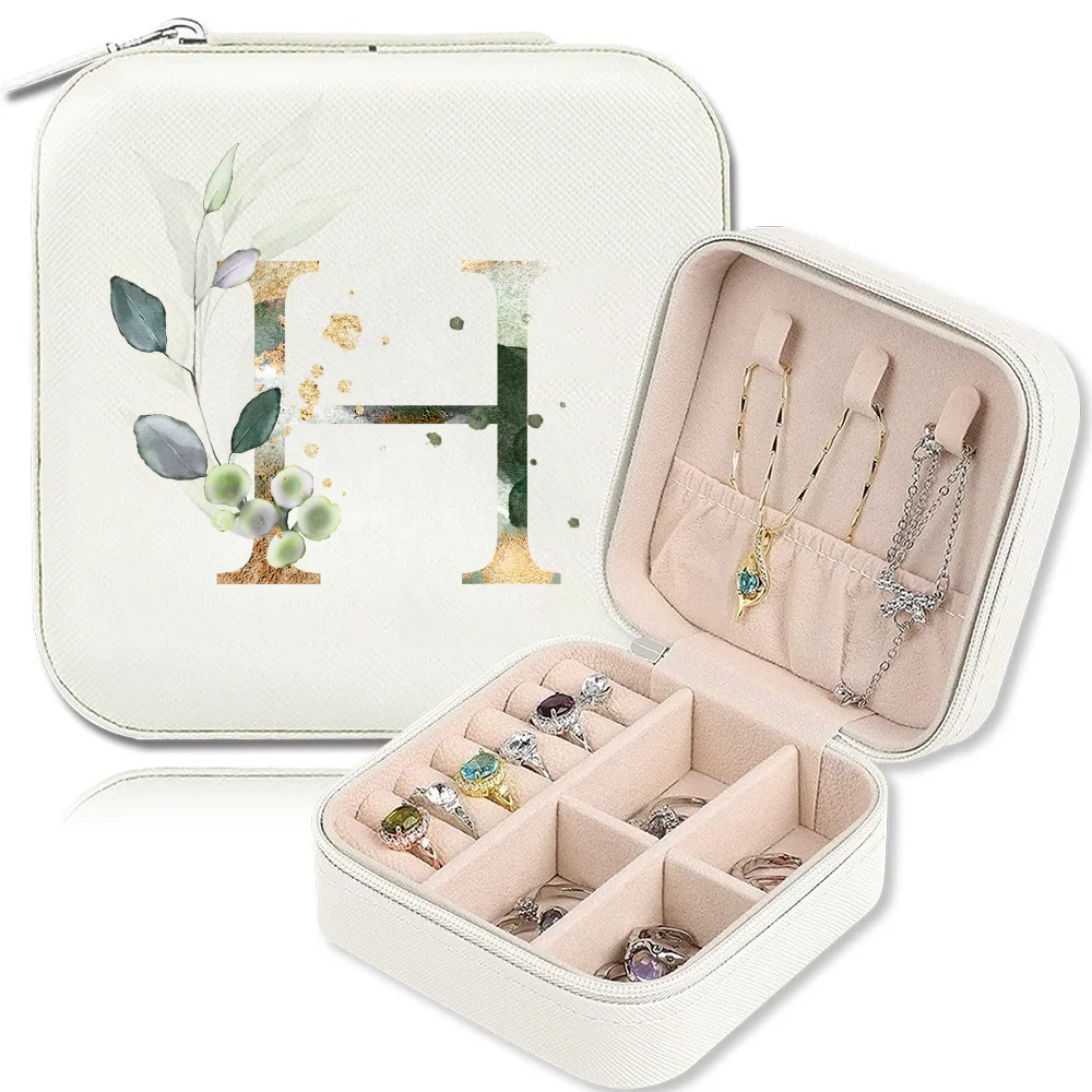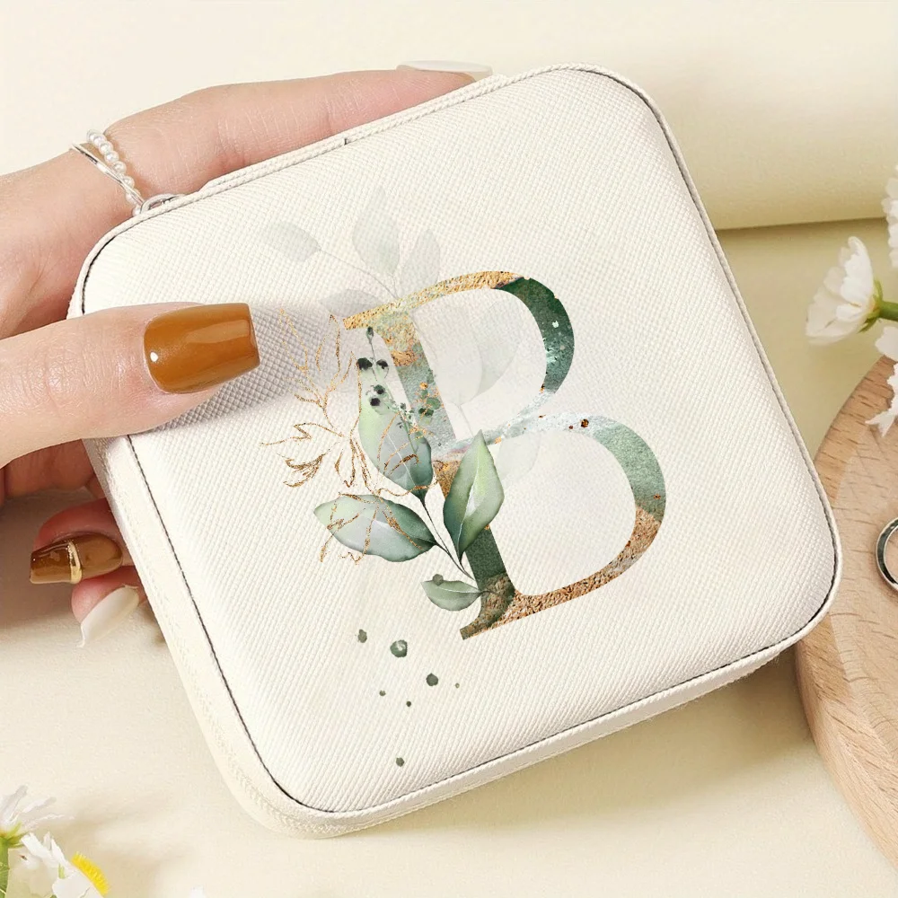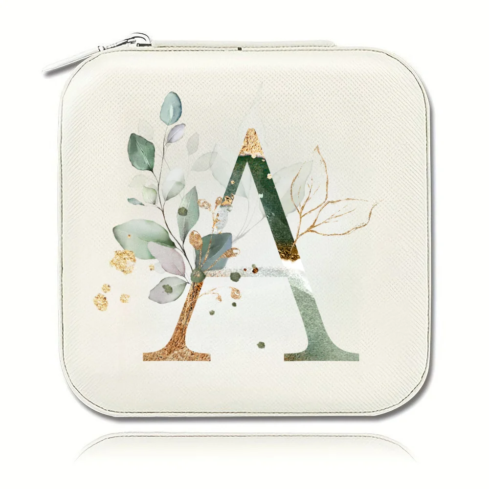 Elegant Zipper Travel Jewelry Case A-Z Letter Print Valentine's Day Bridesmaid Gift Jewelry Box