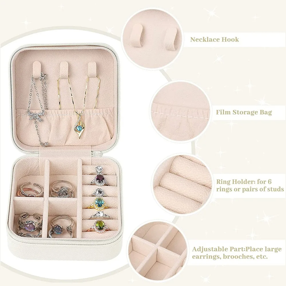 Equipped with a functional zipper, this jewelry box ensures your valuables are securely stored.