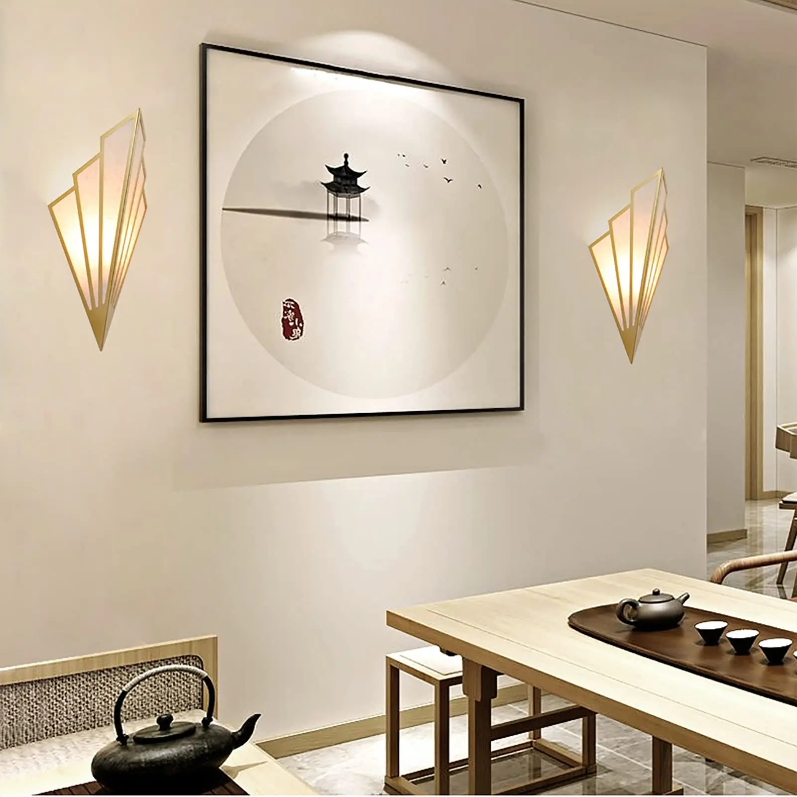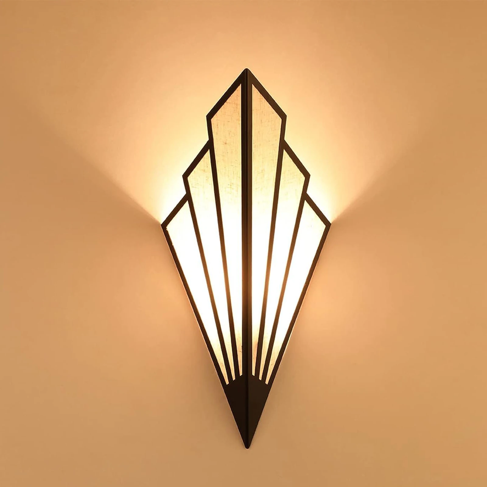 LED Vintage Fan-shaped Wall Light Iron Art Deco Wall Sconces Linen Wall Mount Minimalist Lamp E14 for Living Room Bedroom