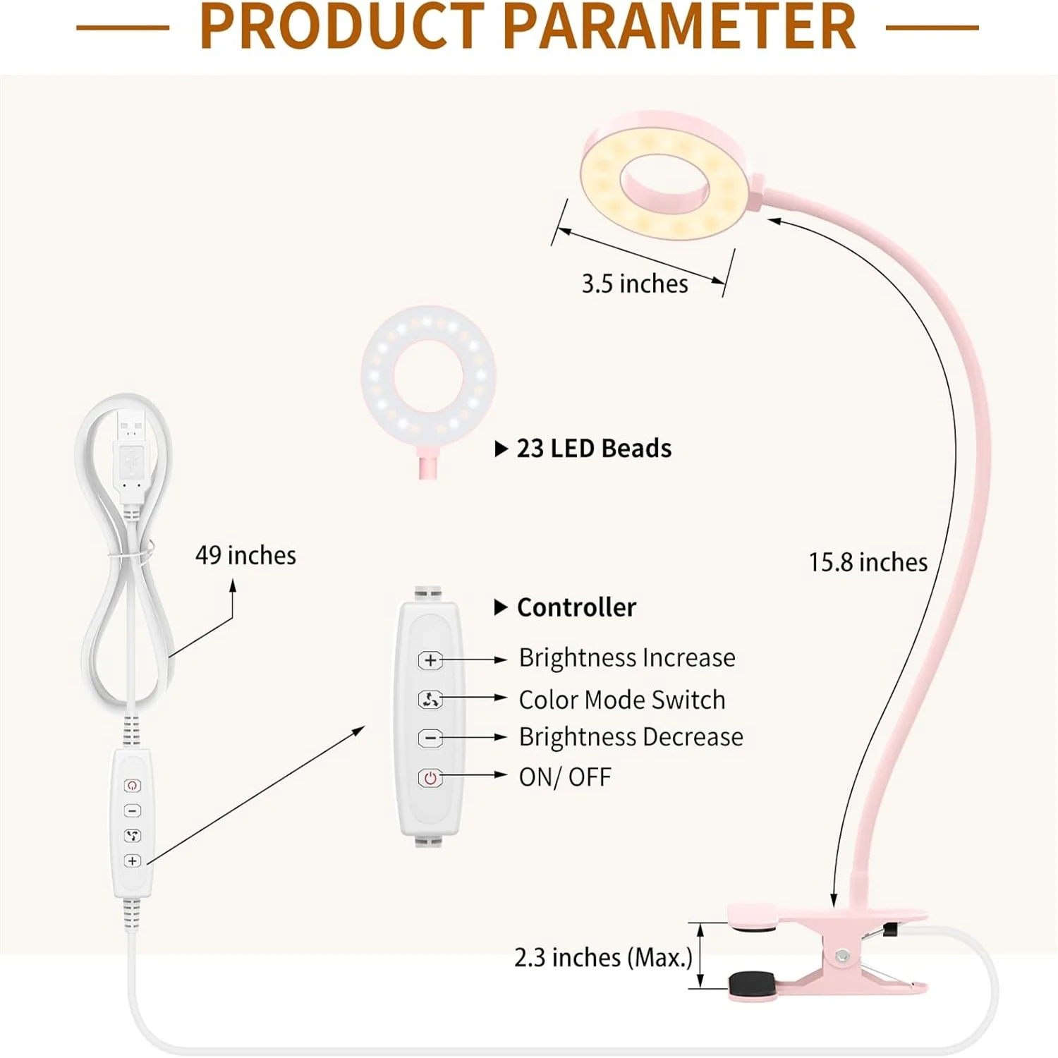 White Pink Black Desk Lamps LED Book Light USB Reading Light Daylight Portable Flexible Easy Clip Night Reading Lamp