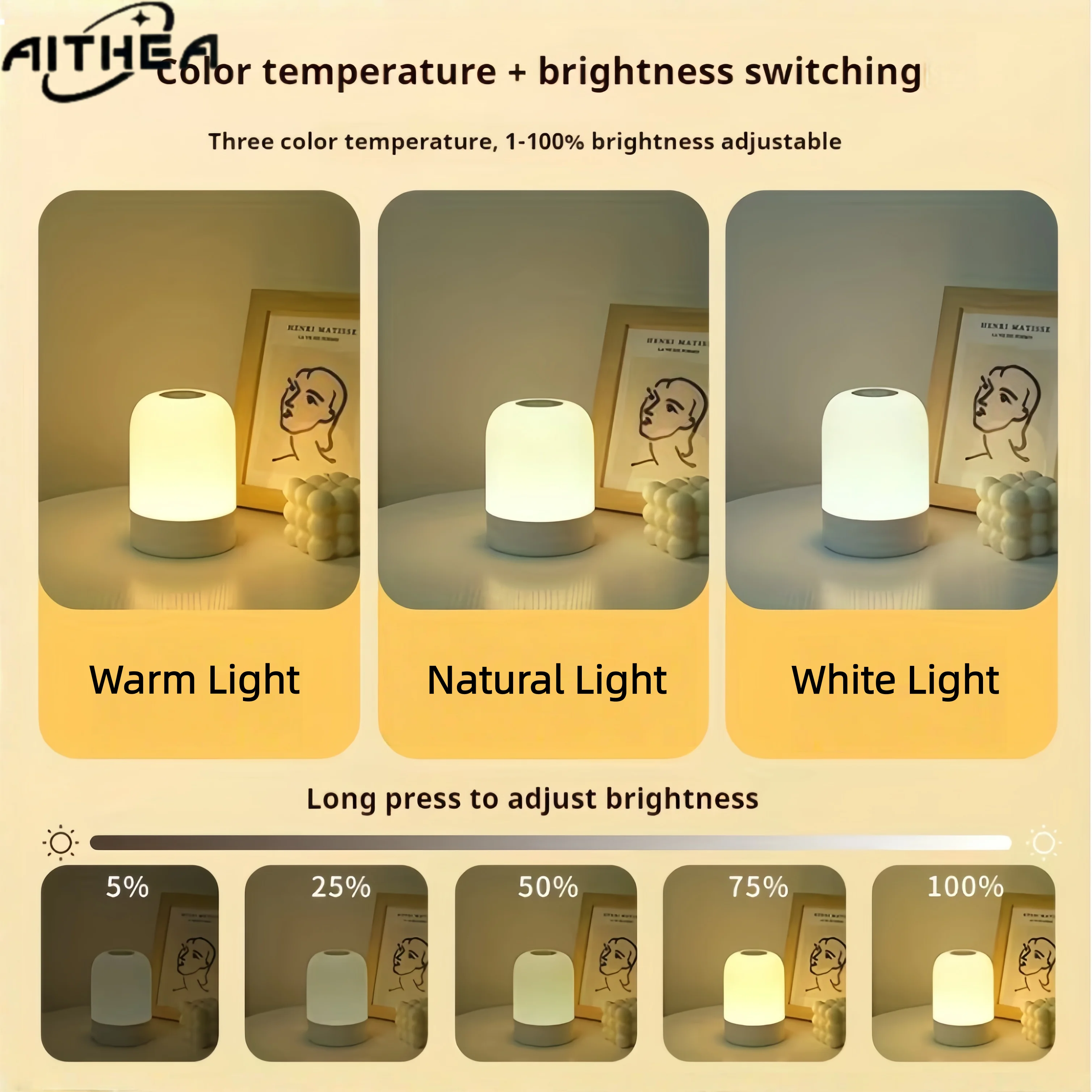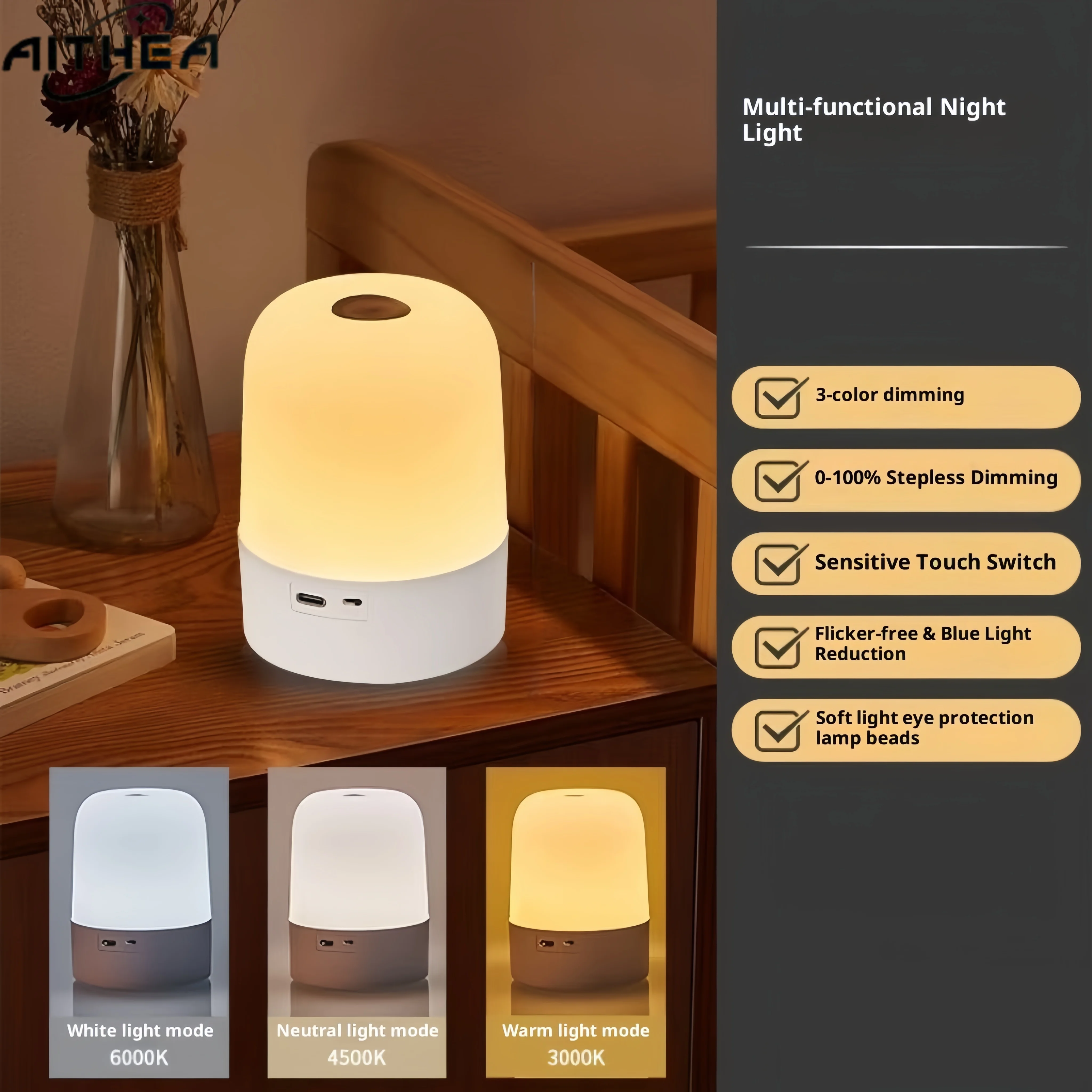 AITHEA Rechargeable Touch Sensor LED Night Light 3-Color Dimmable Portable Bedside Table Lamp for Bedroom Reading Room Decor