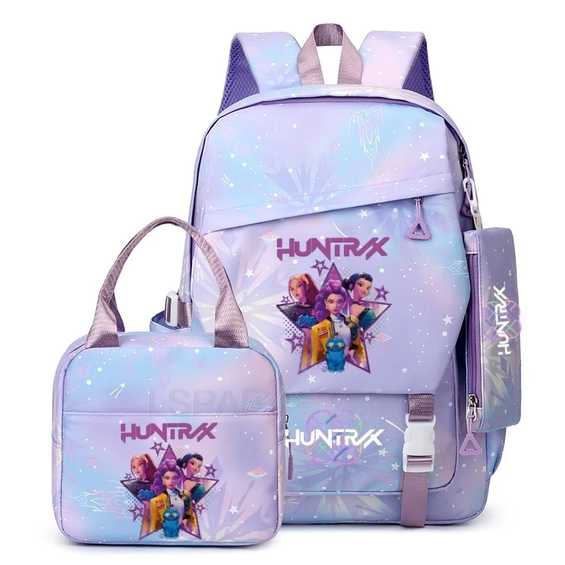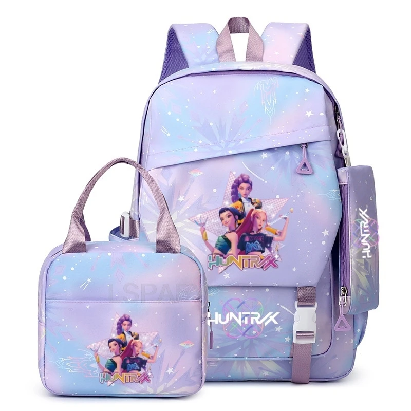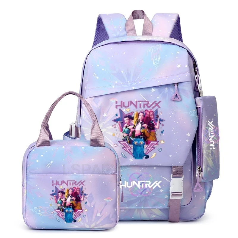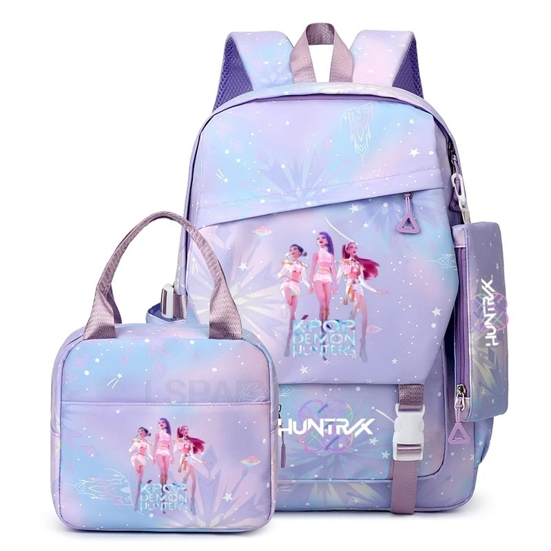 3Pcs/Set KPop Demon Hunters Backpacks Girls Cartoon School Backpack Book Bag Teen Sharkdog Mochila Fashion Casual Knapsack