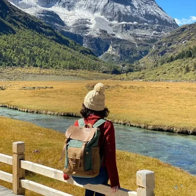 Men Backpack Travel Waterproof Computer Laptop Bag Vintage oil wax Canvas Backpacks Leather Male Backpack School bag