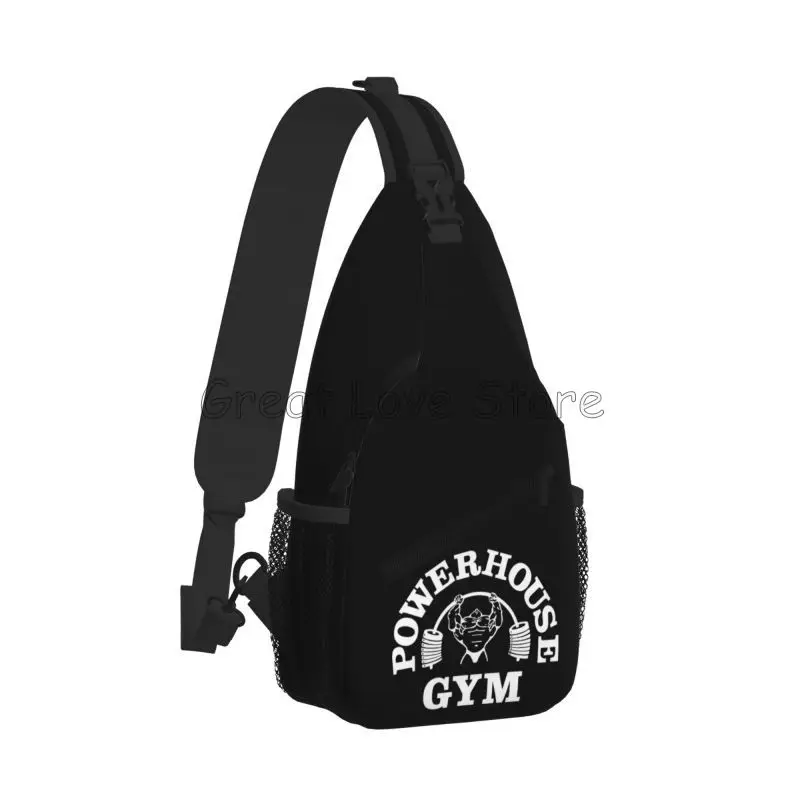 Powerhouse Gym Black Sling Bag Unisex Daily Shoulder Crossbody Chest Backpack Portable Daypack for Travel Hiking Cycling Camping