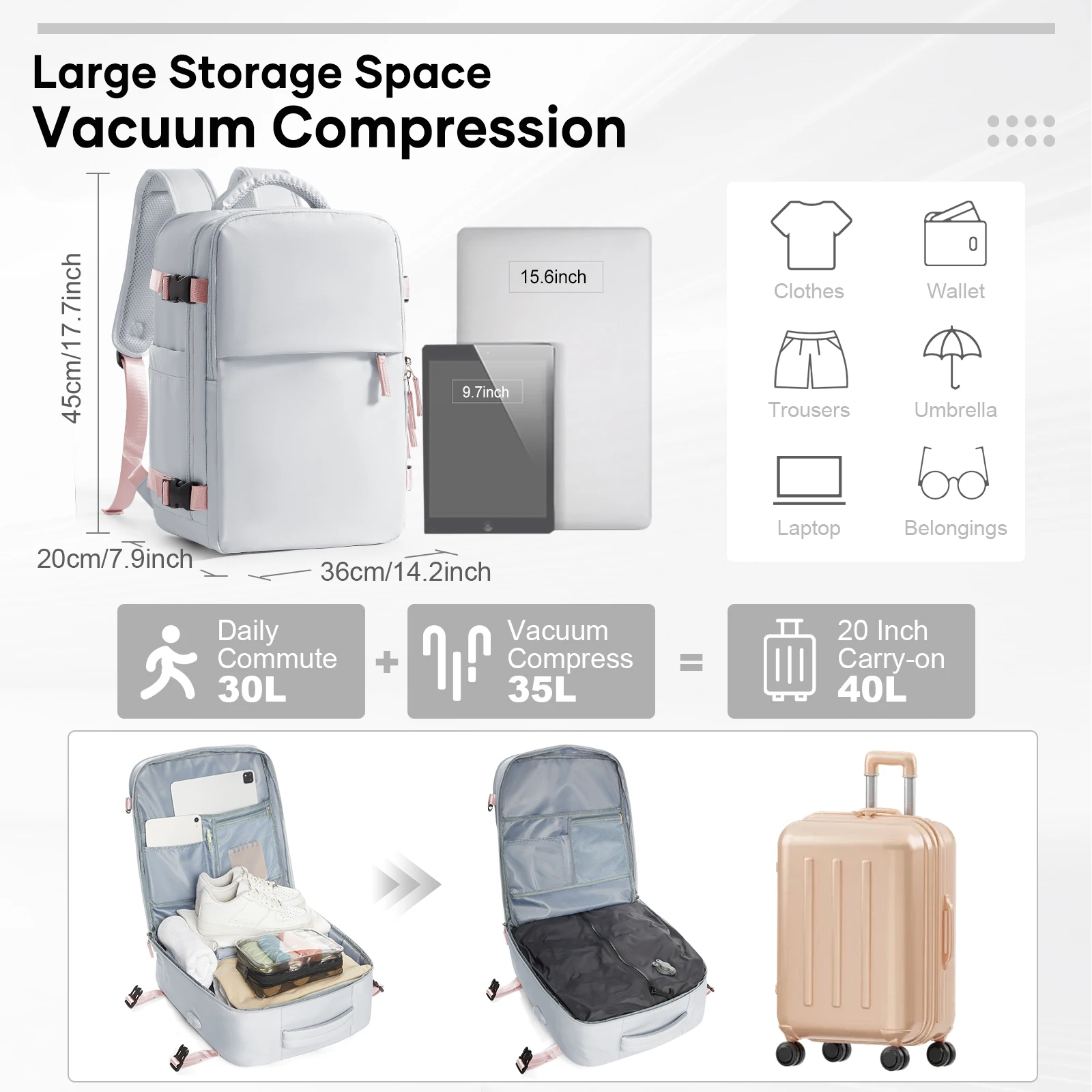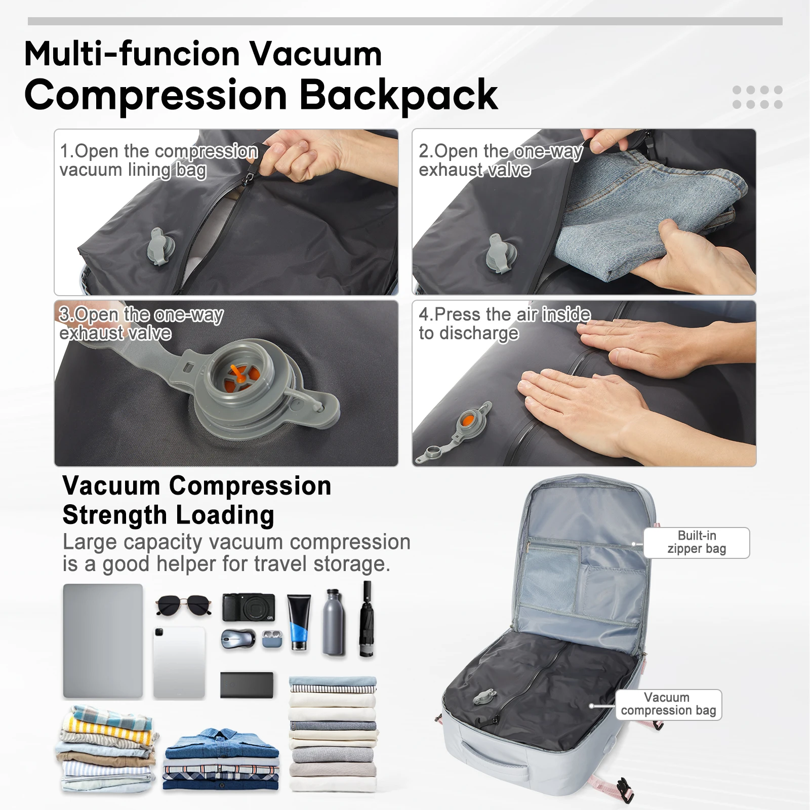 Vacuum Backpack Easyjet Cabin Bag 45x36x20 Backpack, Hand Luggage Cabin Backpack Women Men 15.6 inch Laptop Bag Vacuum Storage