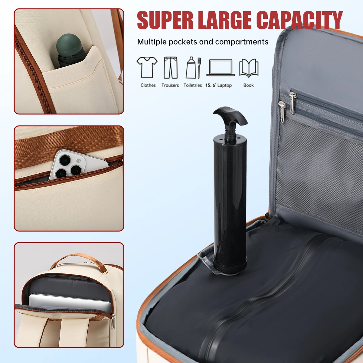 Vacuum Compression Business Backpack for Women 16inch Computer Bag Large Capacity Student Travel Bag Suitable for Boarding