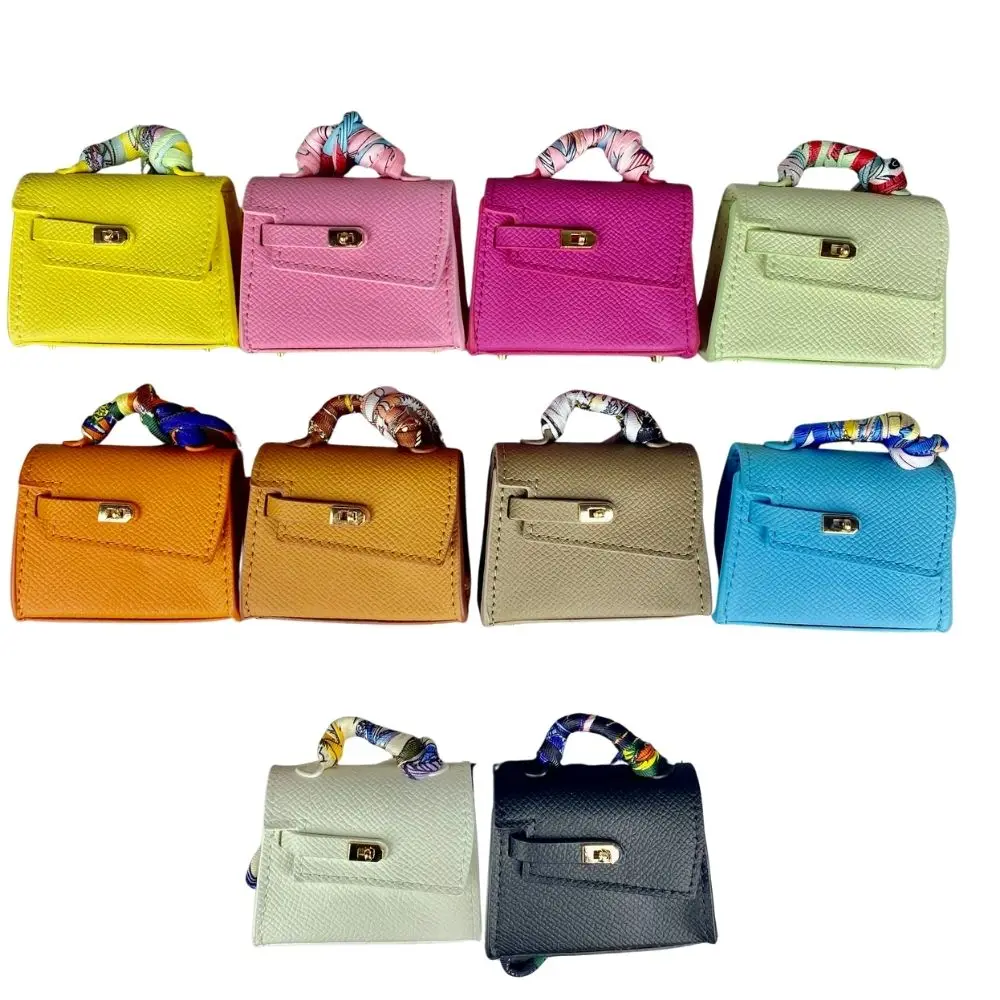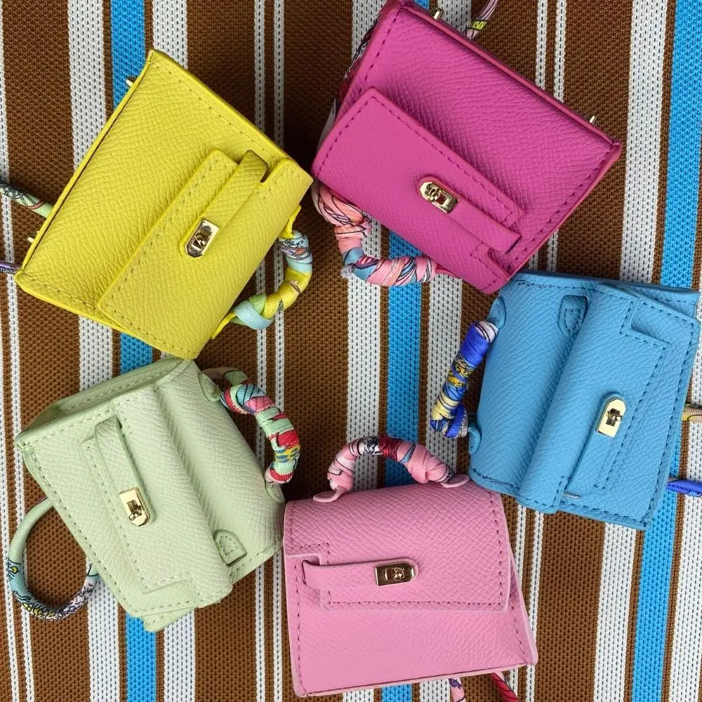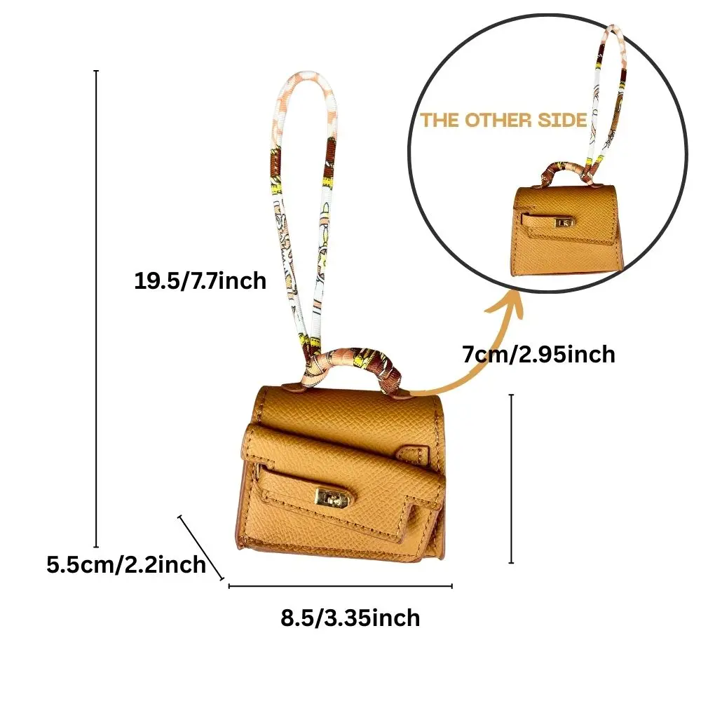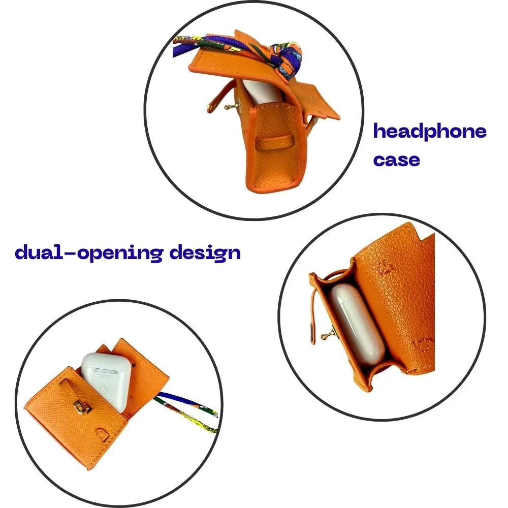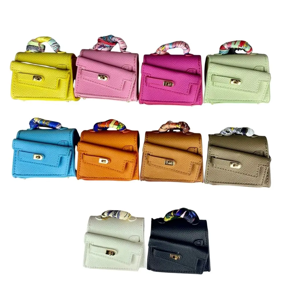 Candy Color Detachable PU Leather Earphone Case Pouch Bag Charm, Double-Sided Swivel Lock Metal Clasp, Keychain for AirPods.