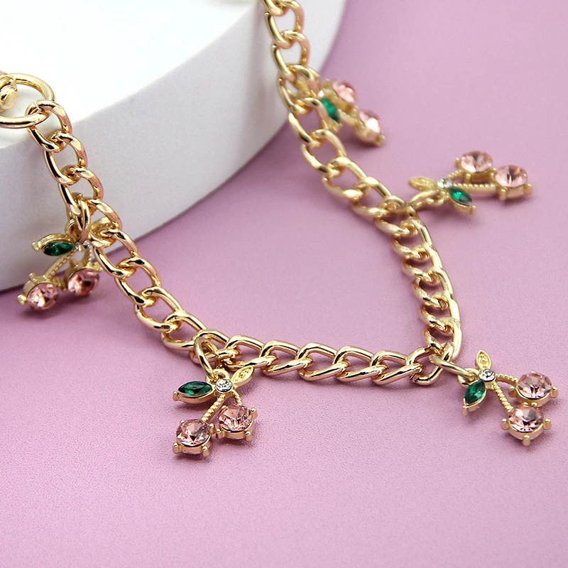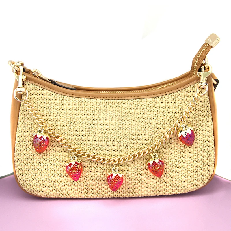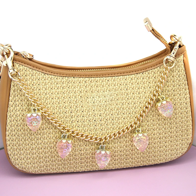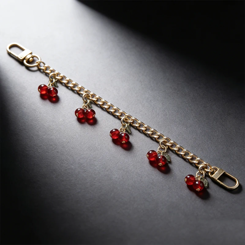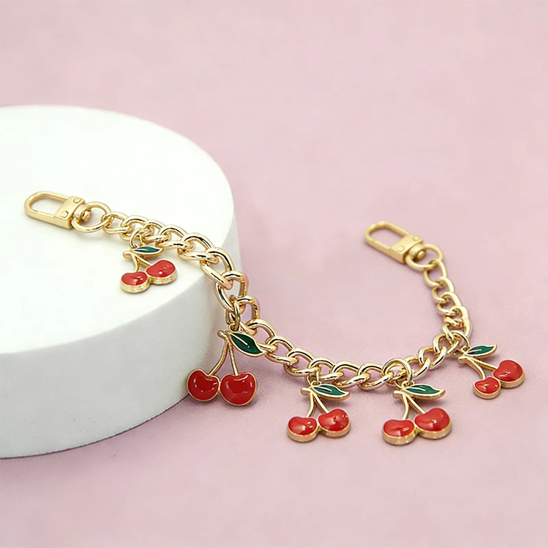 DIY Zinc Alloy Bag Hanging Chain with Cherry Pendant Detachable Shoulder Bag Carrying Chain Handbag Extension Chain for Woman
