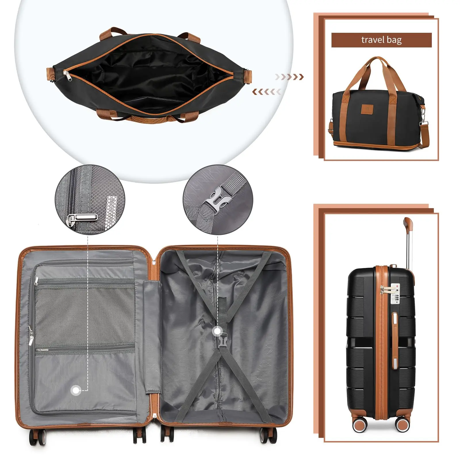 1. Lightweight & Durable Polypropylene Hard Shell: Made from high-quality polypropylene (PP) material, this luggage is lightweight, impact-resistant, and features a textured finish to prevent scratches, ensuring it stays pristine trip after trip.