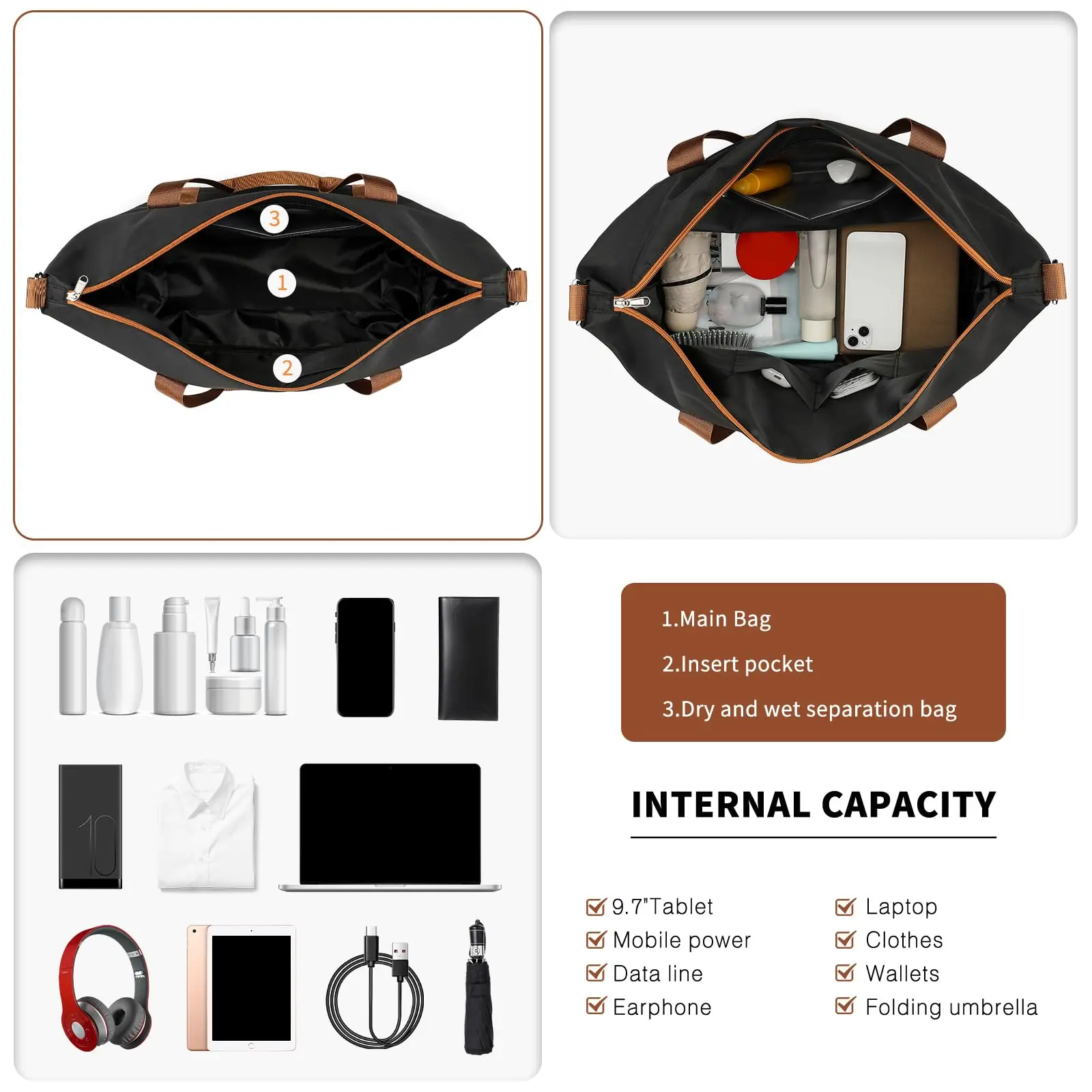 4. Spacious & Organized Interior: Designed with a mesh pocket, zipped divider, and cross-straps to maximize packing efficiency. The polyester fabric with a thin foam layer provides added cushioning for your belongings.