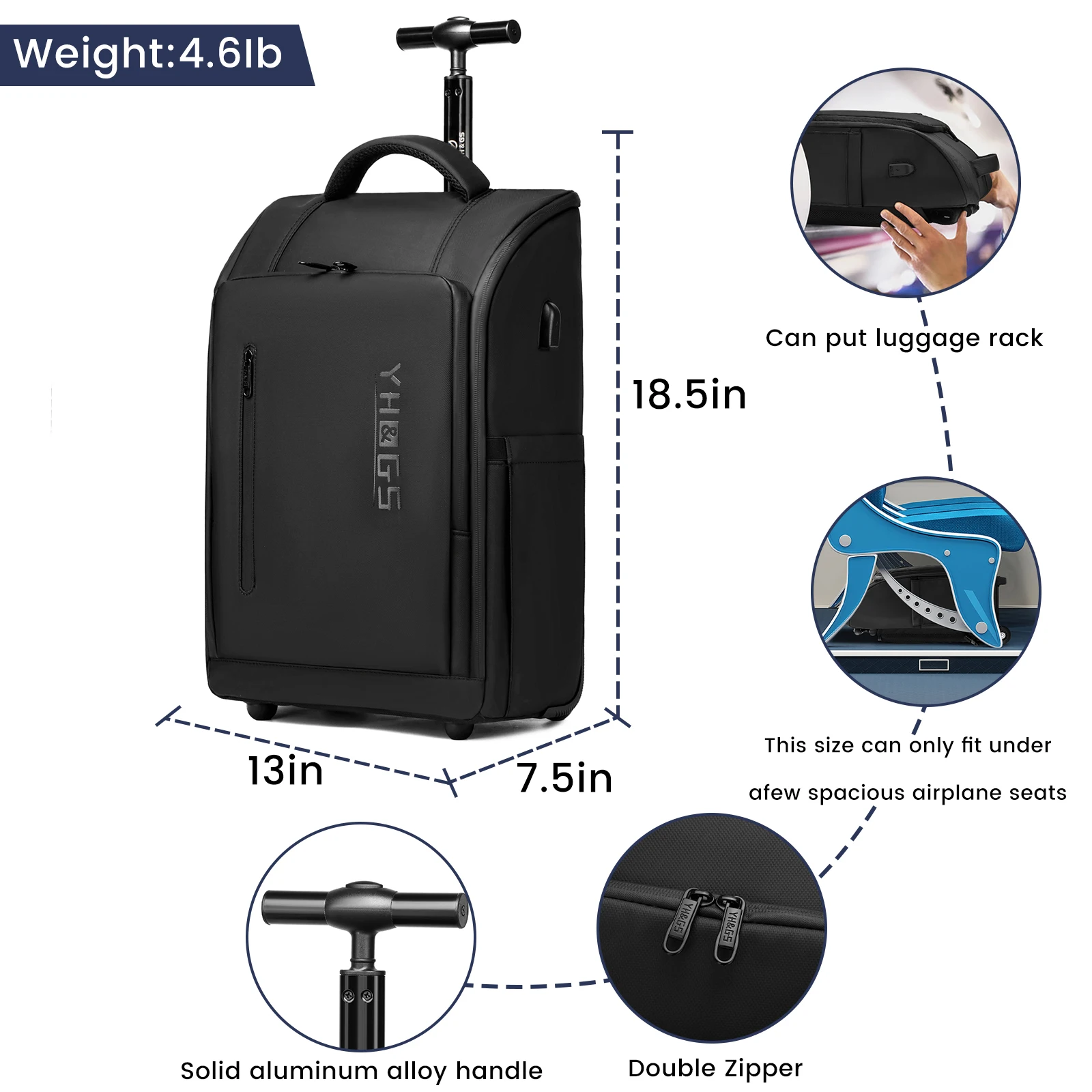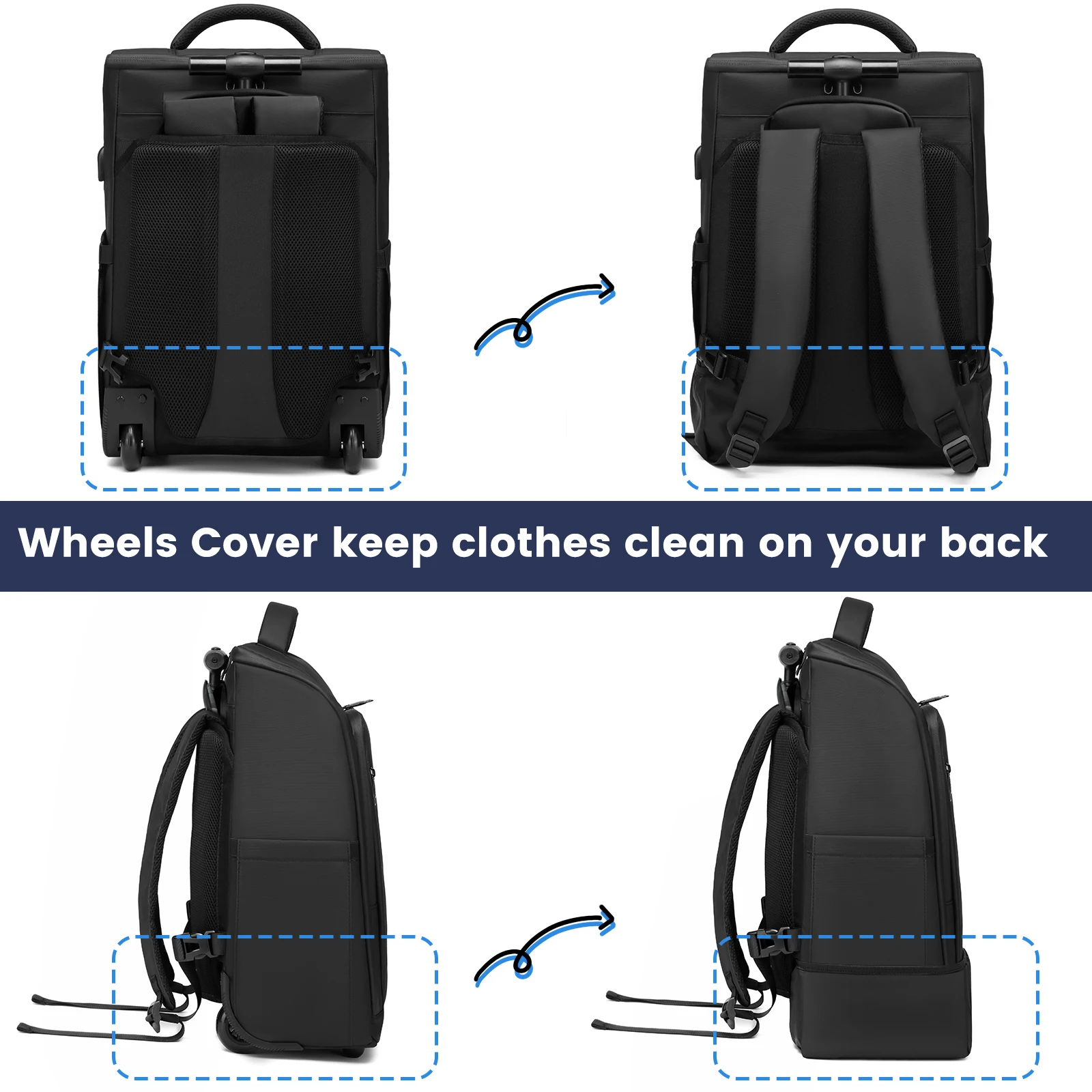 Travel Trolley Rolling backpacks for Man Wheeled backpack On Wheels luggage Rolling Bag for Boardable 15.6in Laptop Bag with USB