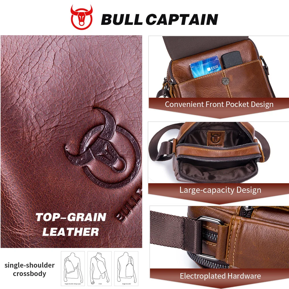 BULLCAPTAIN Leather Men's Messenger Bag Business Shoulder Bags Suitable For 7.9 Inch Ipad Mini High Quality Male Crossbody Bages