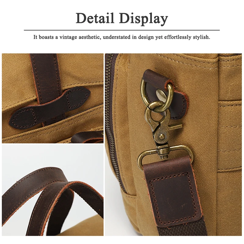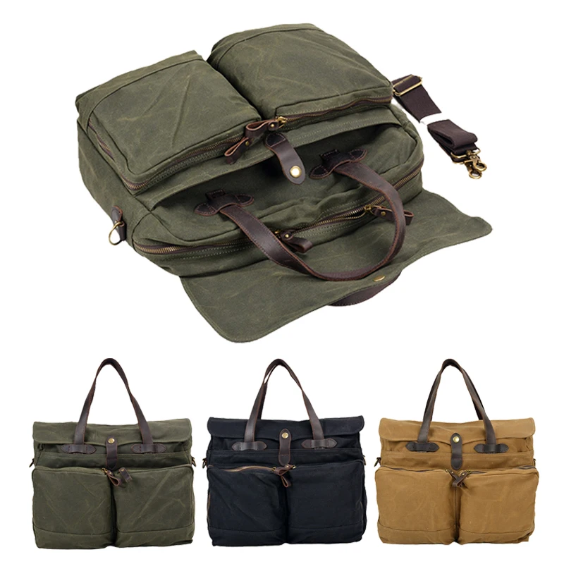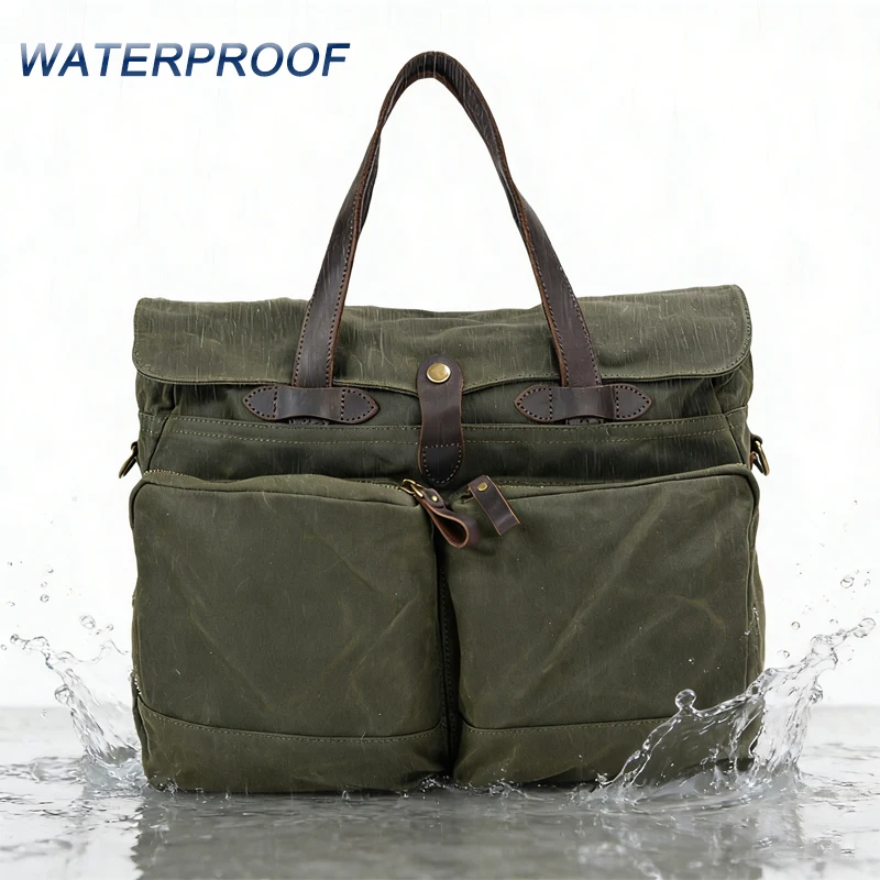 Retro Soft Oil Wax Canvas Tote Bag Large Capacity Men's Briefcase Multi-functional Handbag Shoulder Bag Crossbody Messenger Bag