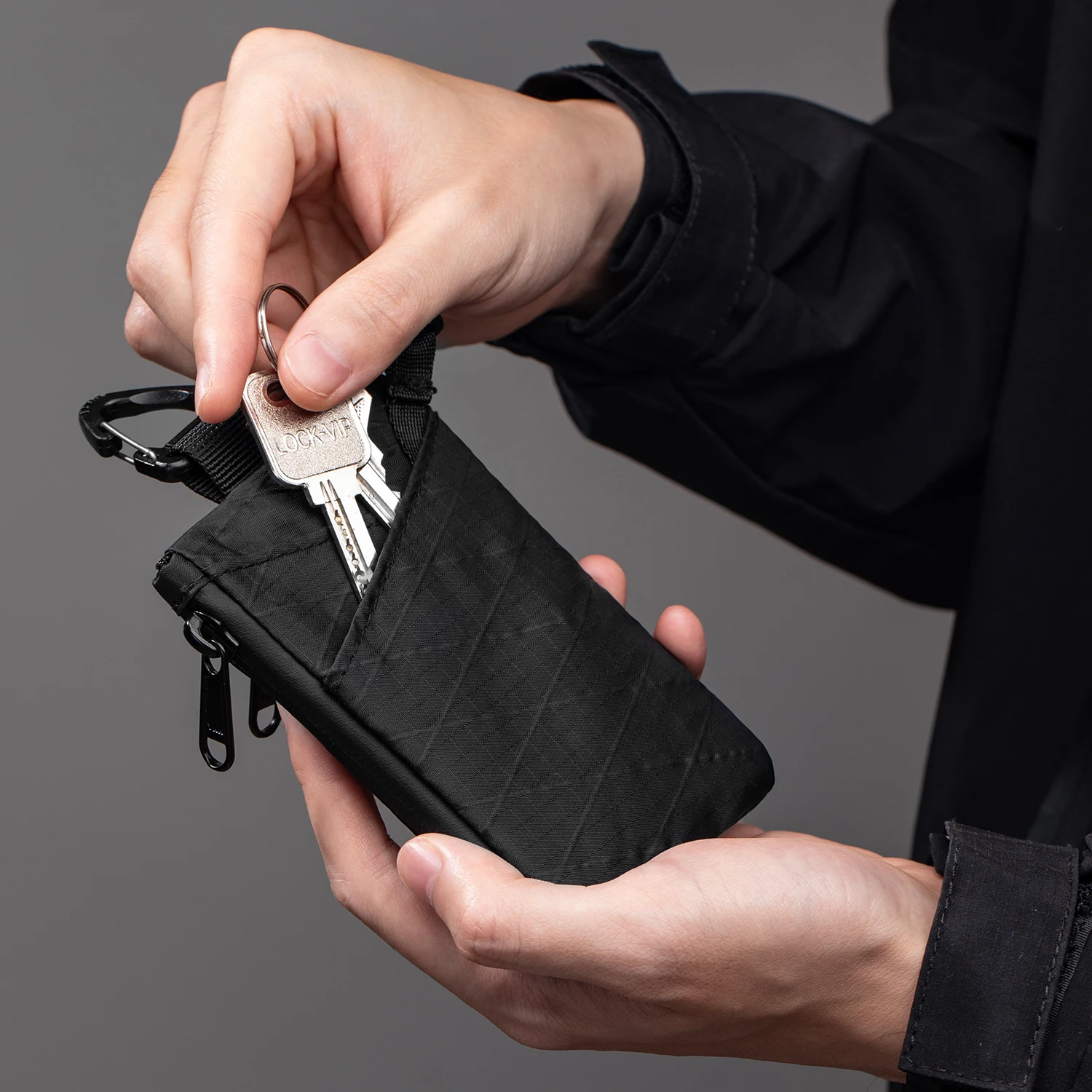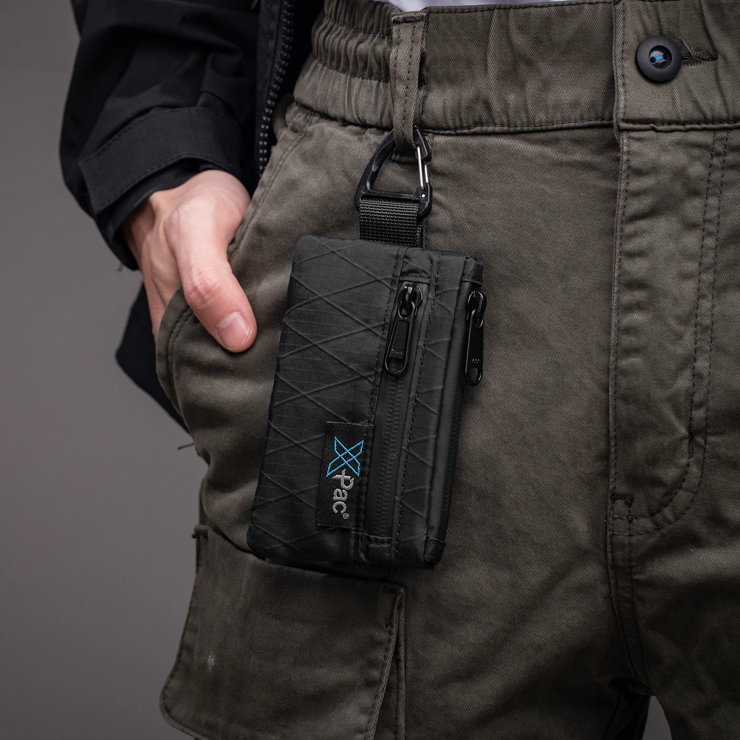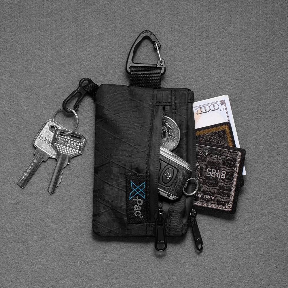 Slim Black X-PAC Fabric Wallet-like Card Holder & Key Pouch with YKK Zipper - Multi-Compartment Organizer