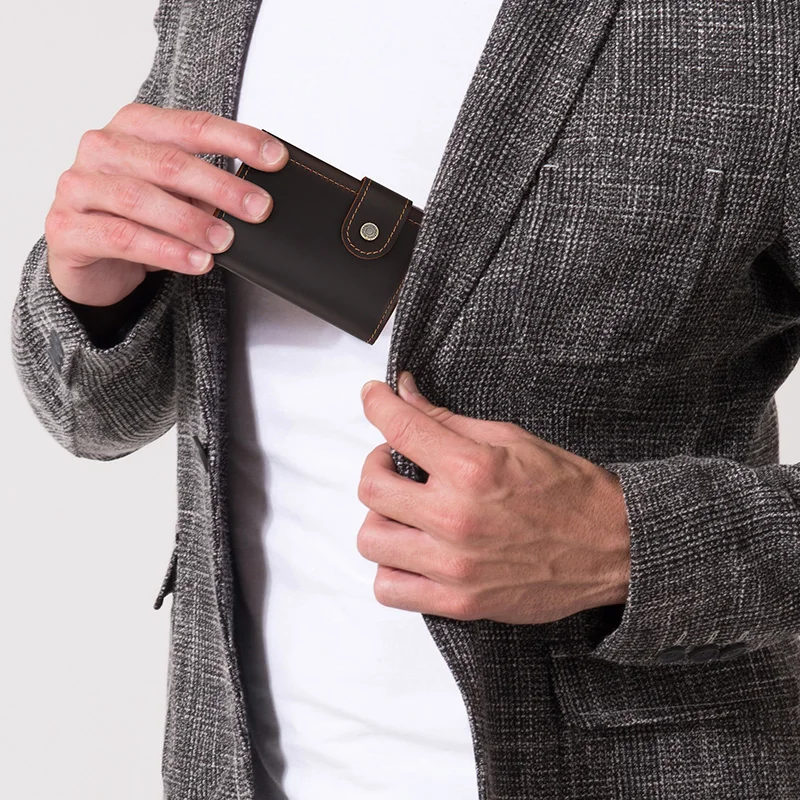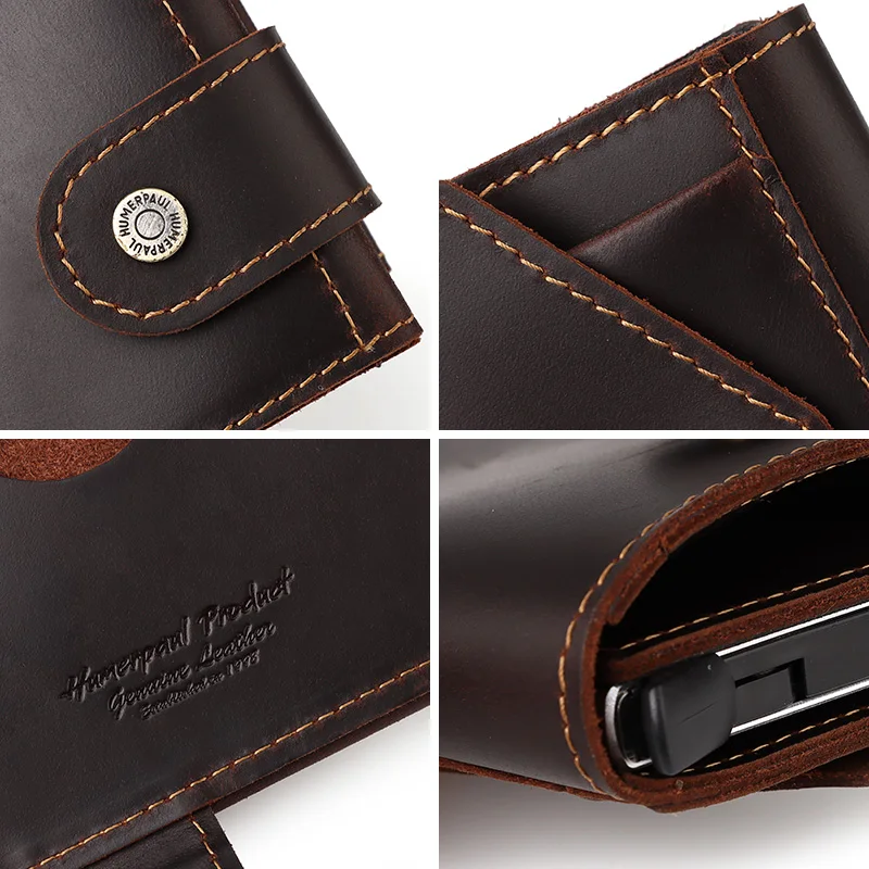 Vintage Crazy Horse Leather Men Wallets RFID Protection Mini Metal Card Holder Wallet Zipper Coin Pocket for Man
