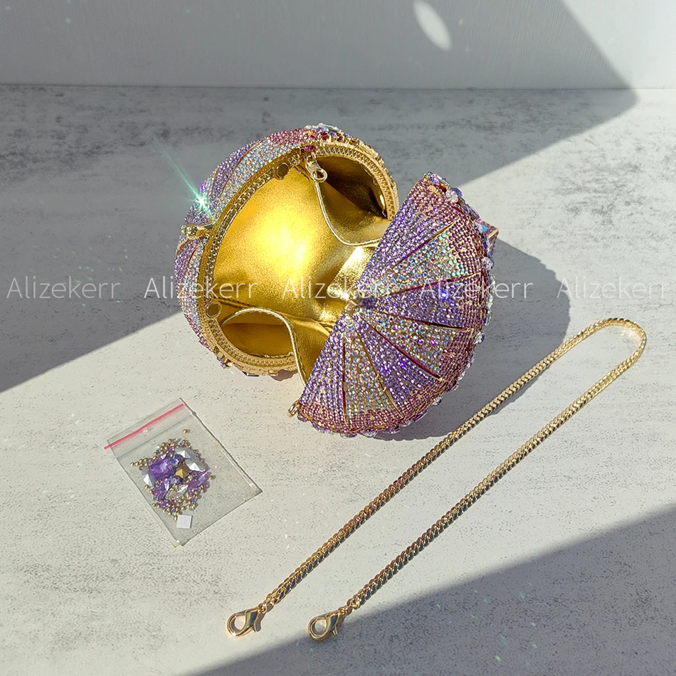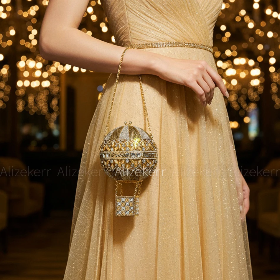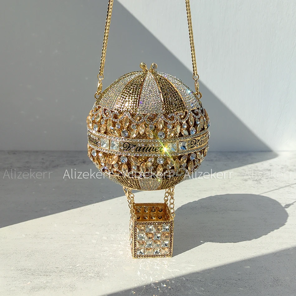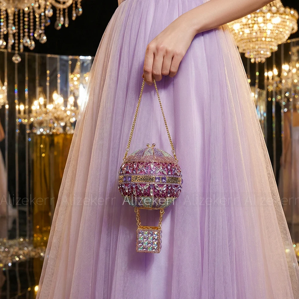 Alizekerr Hot Air Balloon Shaped Crystal Evening Bags Women Luxury Classy Unique Rhinestone Circular Clutch Purses Wedding Party
