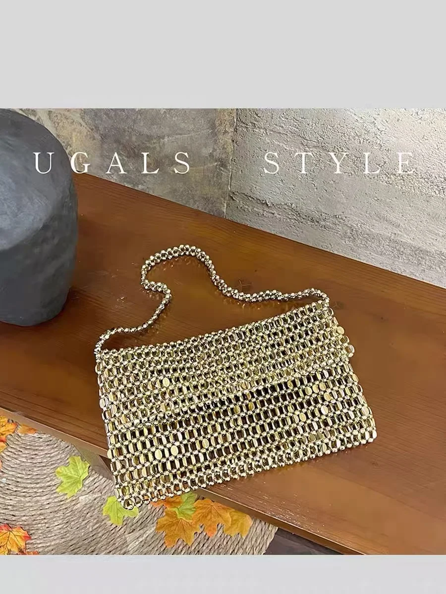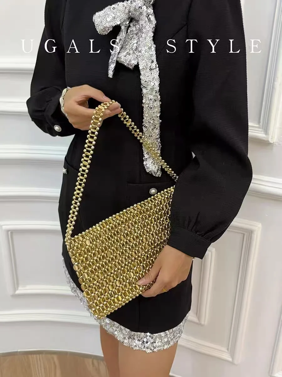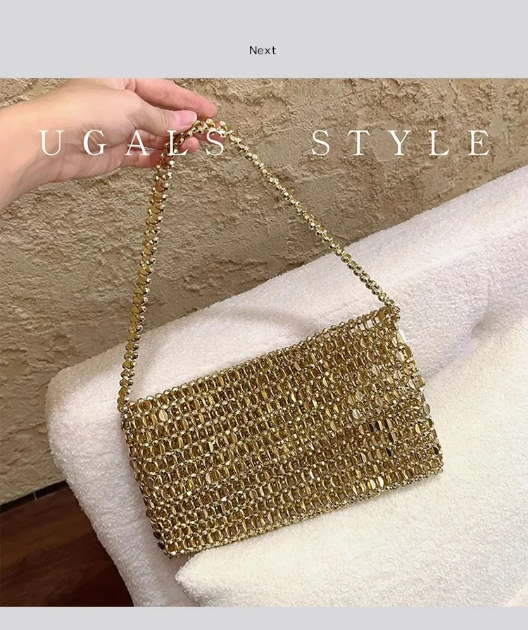 Fashion Beads Beading Woven Handmade Square Bag Women's Handbag Glitter Shiny Shoulder Underarm Bag Lady Purse Female Casual Bag