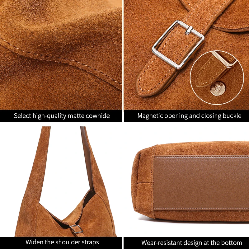 New Winter Women's Natural Suede Leather Bags Female Soft Cowhide Durable Crossbody Shoulder Bag Ladies Fashion Commute Handbags