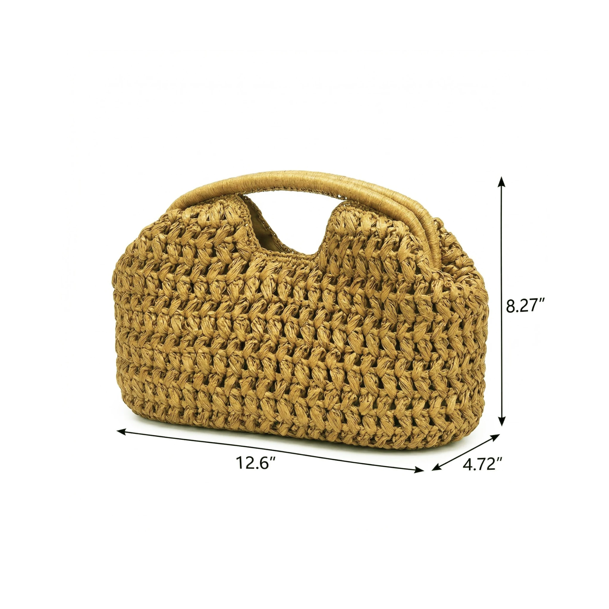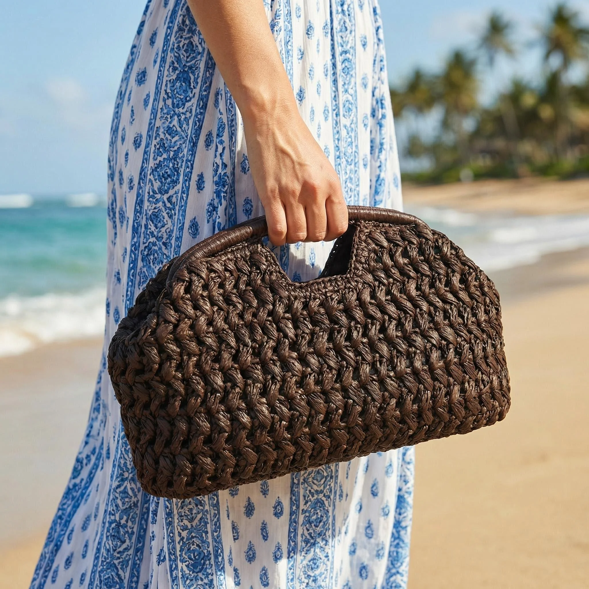 Seaside vacation style grass woven bag, spring and summer new style, European and American high-end feeling, hand-held gold clip