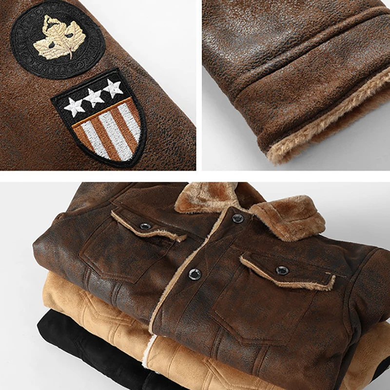 High Quality Leather Jackets Casual Man Winter Fleece Motorcycle Faux Leather Jacket Male Anti-wind Lapel Zipper Jackets Men