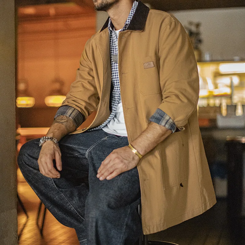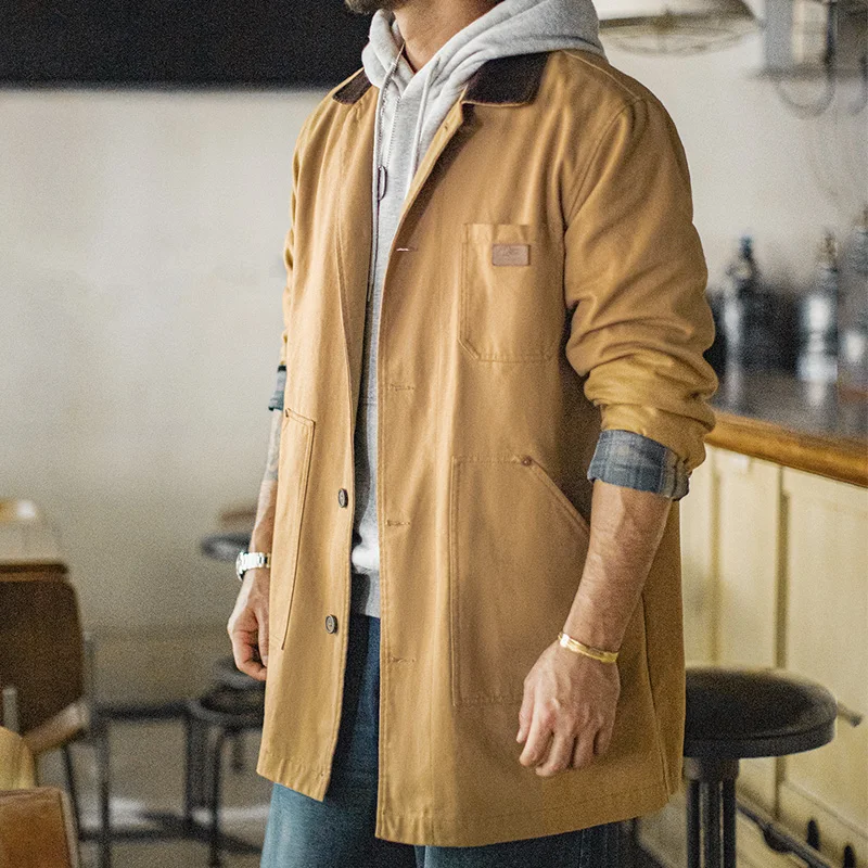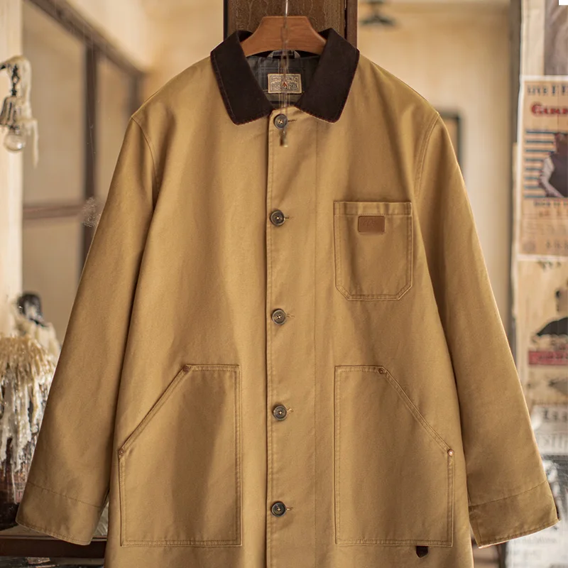 Maden Men’s Vintage Michigan Jacket Mid-length Barn Loose Fit Heavyweight Canvas Coat Khaki Workwear Autumn Casual Outerwear