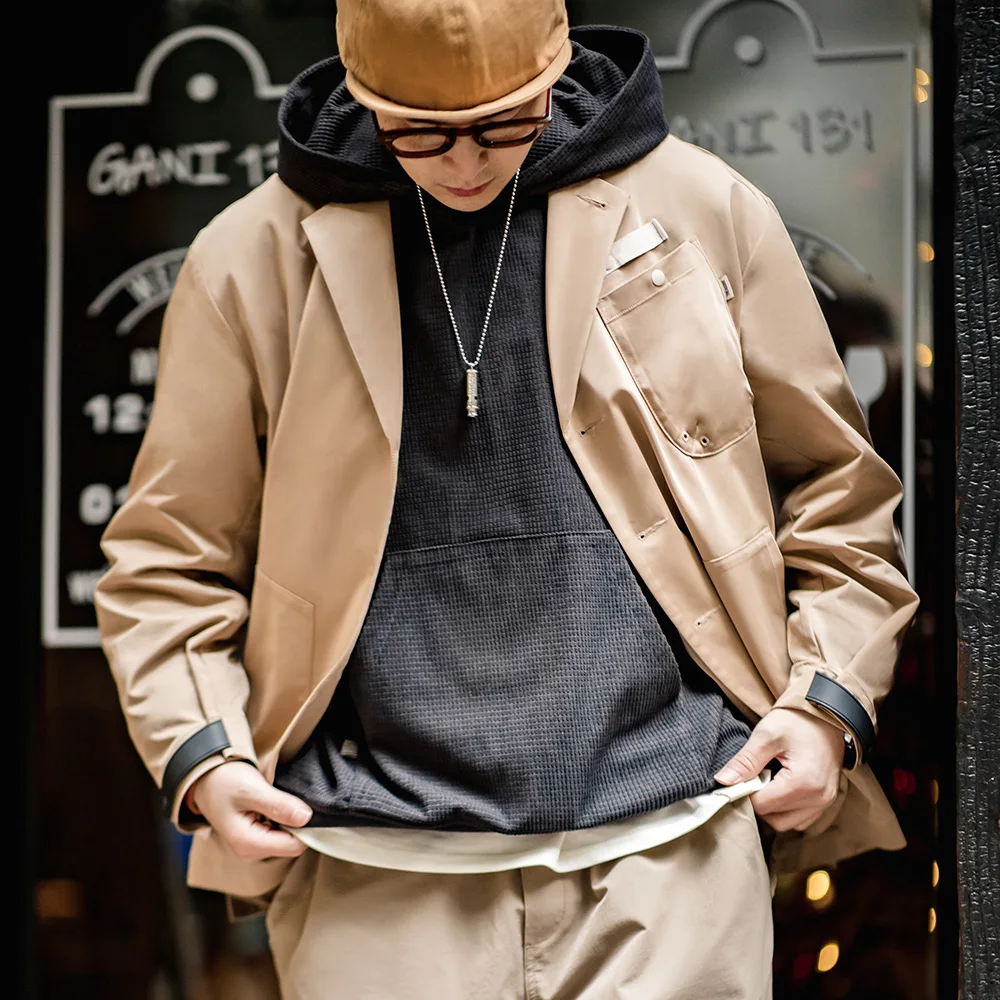 Maden New Casual Notch Lapel Men's Spring Jacket with Loose Fit Single Breasted Multi-Pocket Blazer Vintage Versatile Outerwear