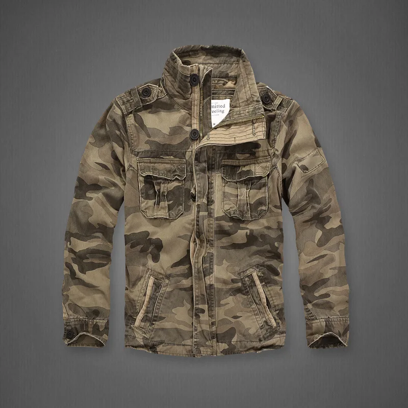 Men Camo Cargo Jacket Autumn Heavyweight Wash Cotton Windbreaker Jacket Military Camouflage Outdoor Sportswear Coat Multi Pocket