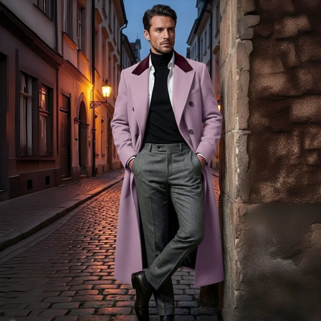 How to wear Men's Thickened Wool Coat with lining?