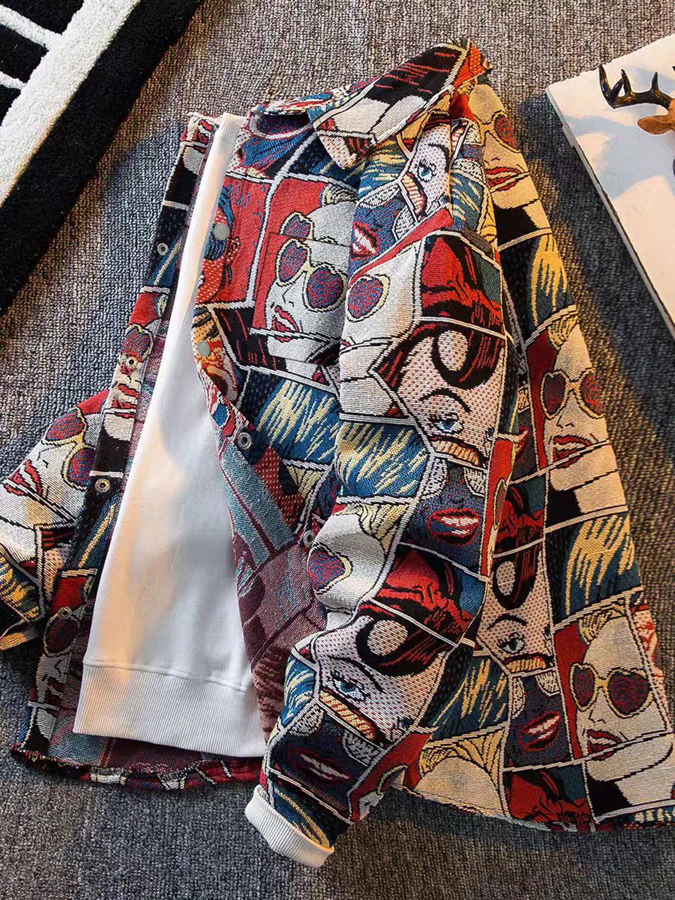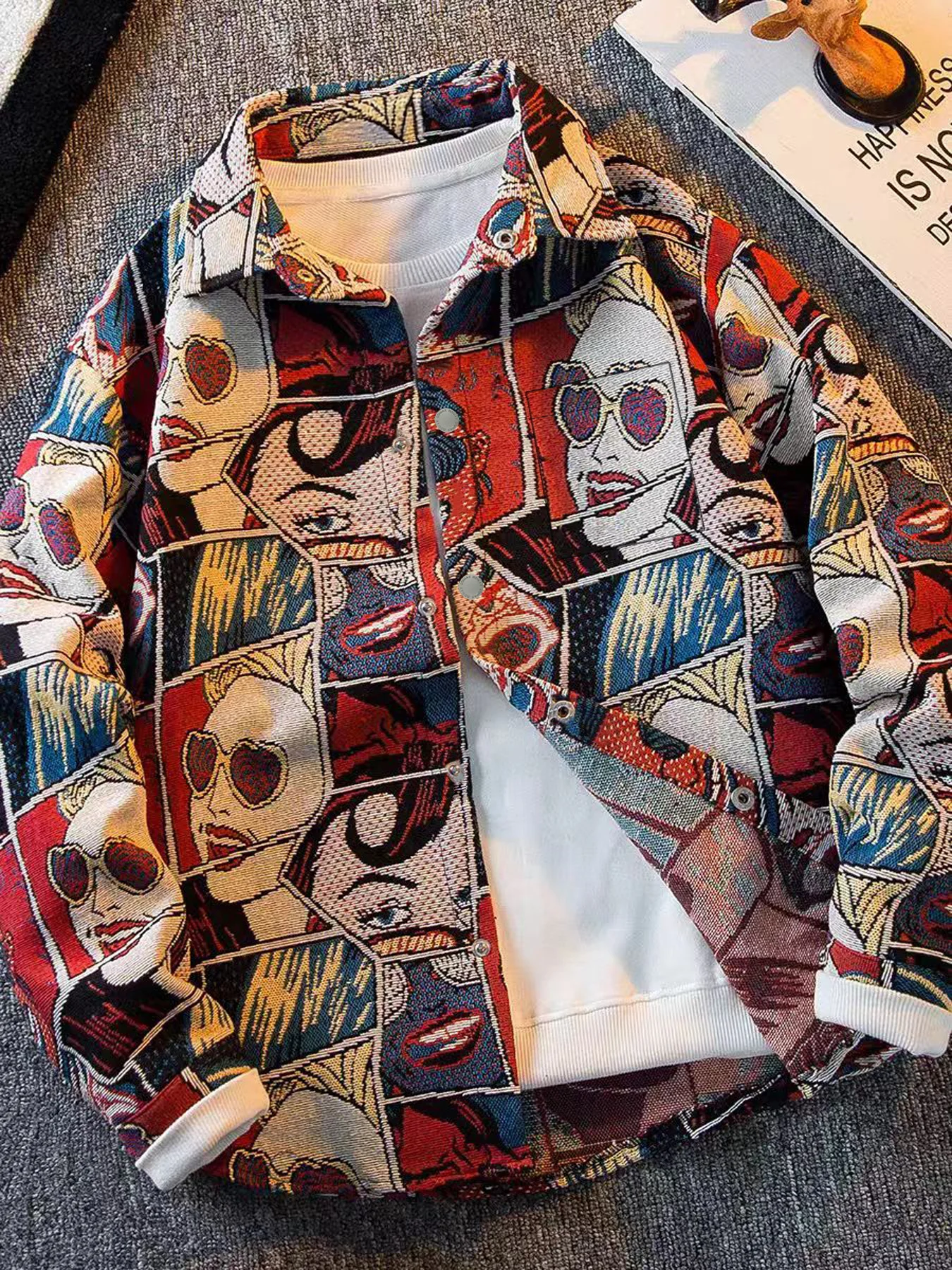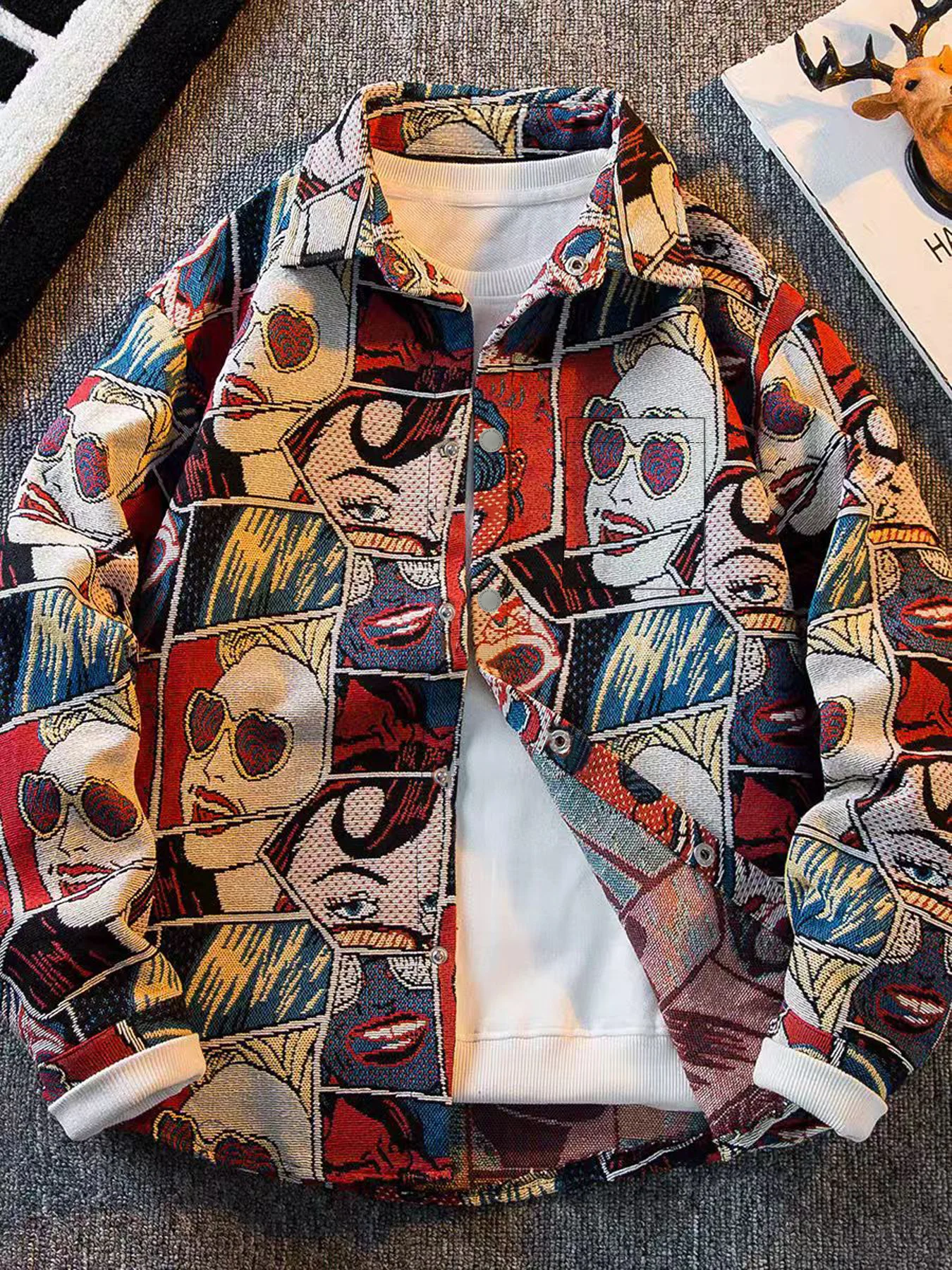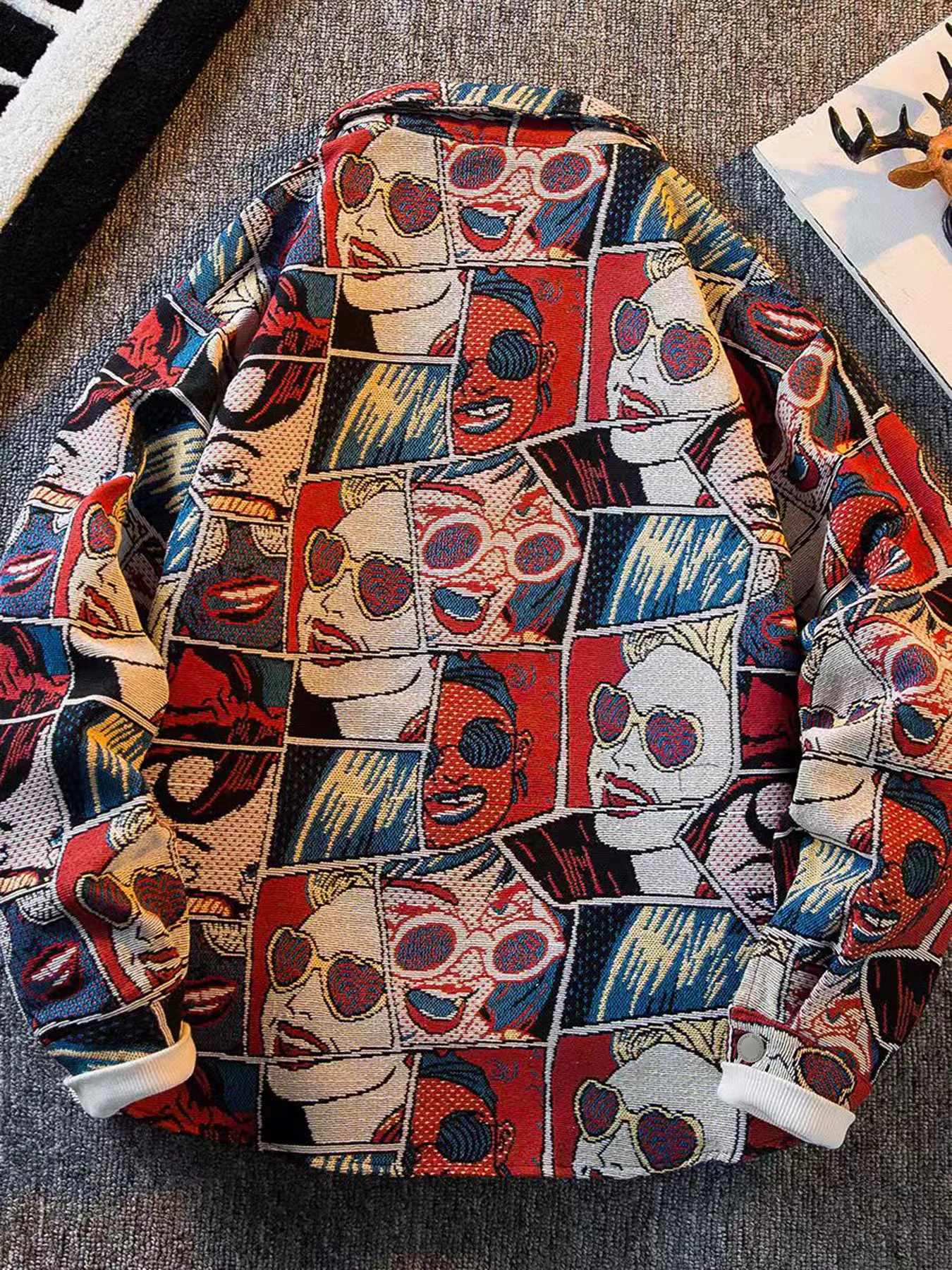 Spring and autumn trendy rugged stylish workwear jacket for men, American design, retro fun cartoon comic print jacket
