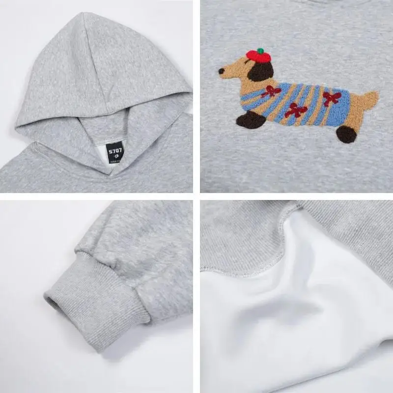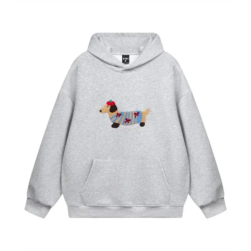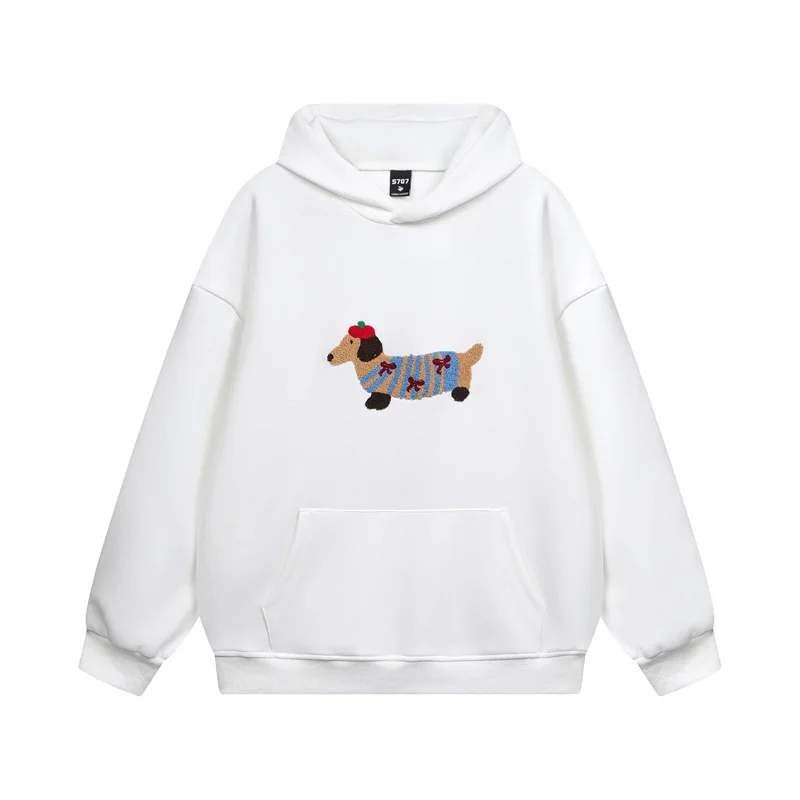 Puppy Print Spring and Autumn New Simple Fashion Harajuku Solid Color Loose Hoodie Street Trend Casual Sports Shirt Regular Fit