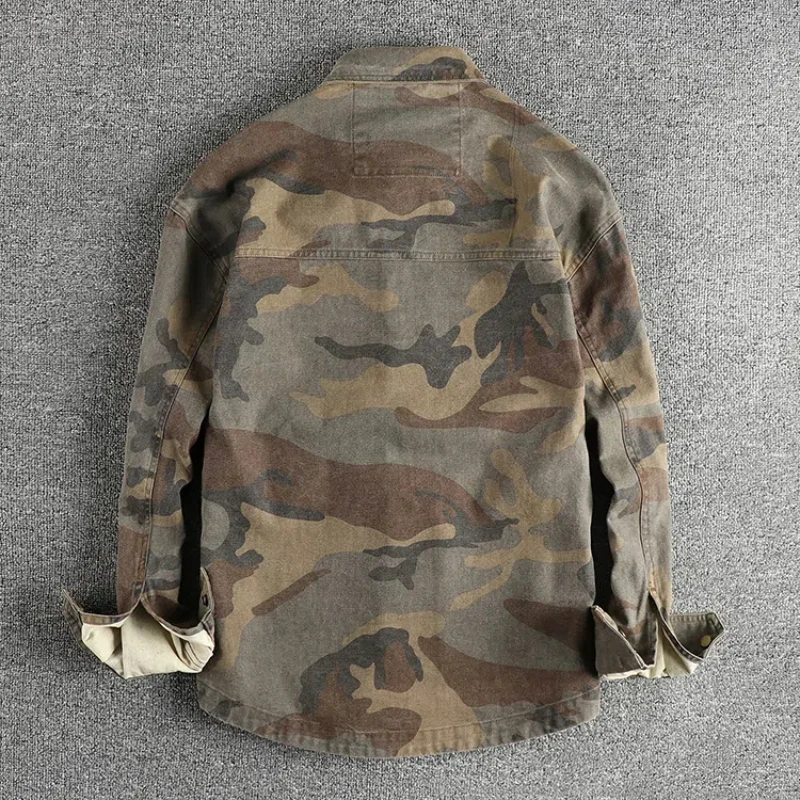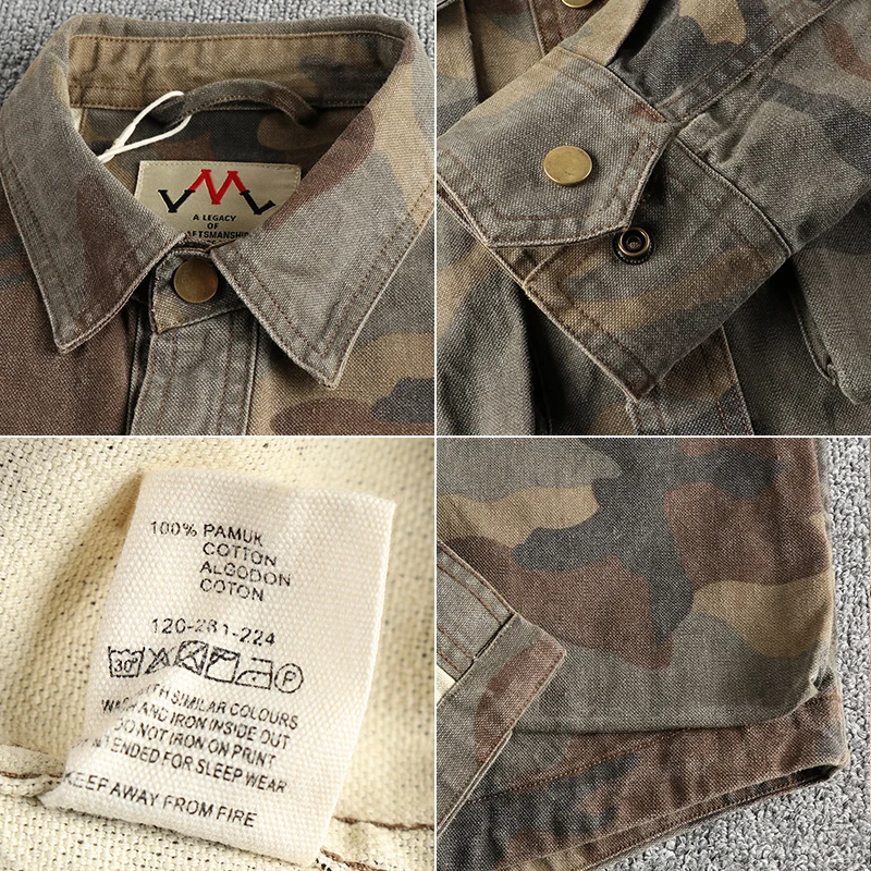 Three-dimensional pocket design all cotton bead sail woven washed old cargo shirt male army fan outdoor trend coat