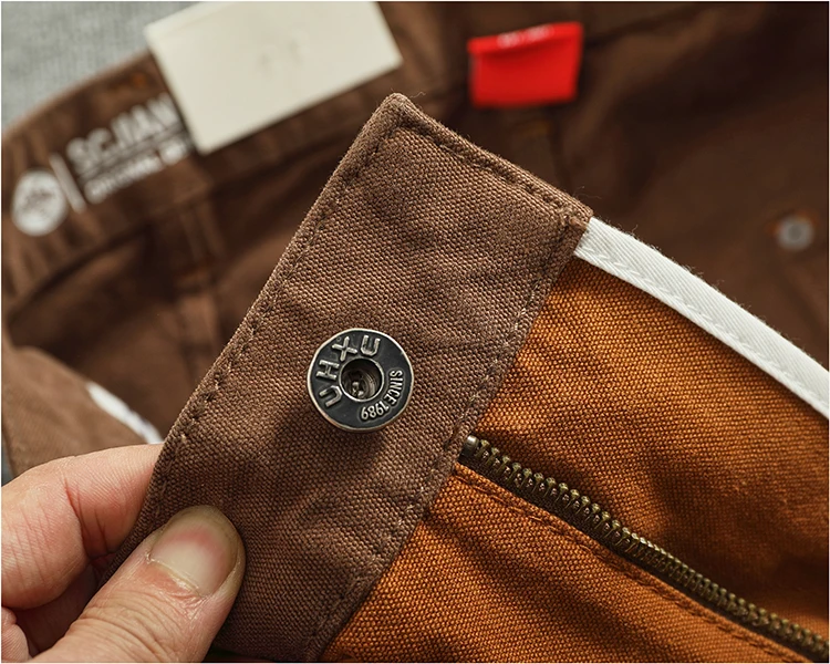 Autumn Winter Vintage Heavyweight High Quality Retro Workwear Pants Men's Pearl Canvas Splicing Logging Motorcycle Casual Pants