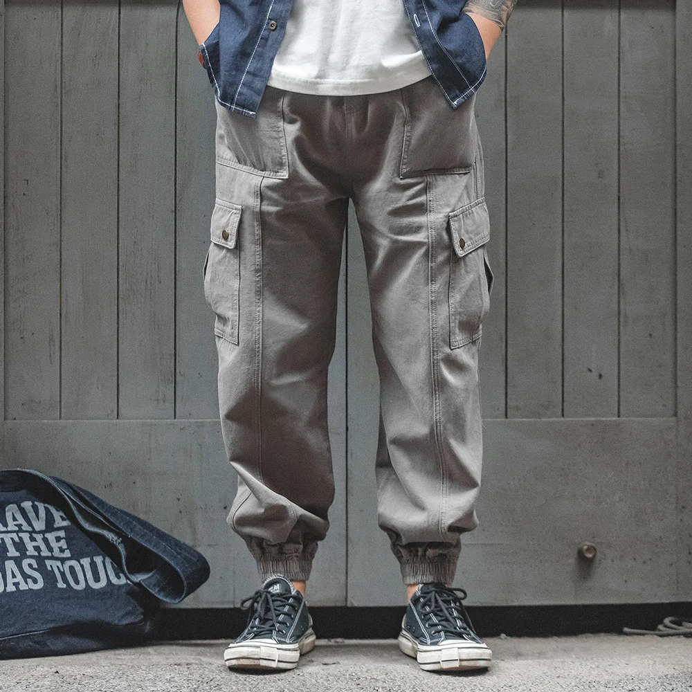 Maden American Retro Black Functional Leggings Pocket Straight Tube Casual Nine Point Lantern Leggings For Men