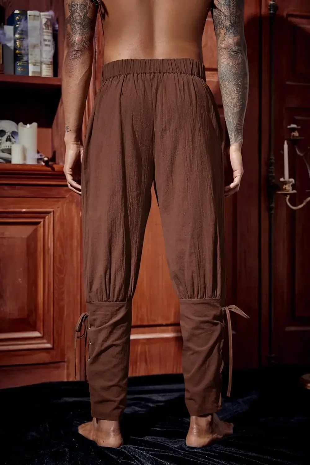 Mens Medieval Ankle Pants Renaissance Viking Pirate Lace Up Tapered Halloween Linen Costume Trousers cargo pants