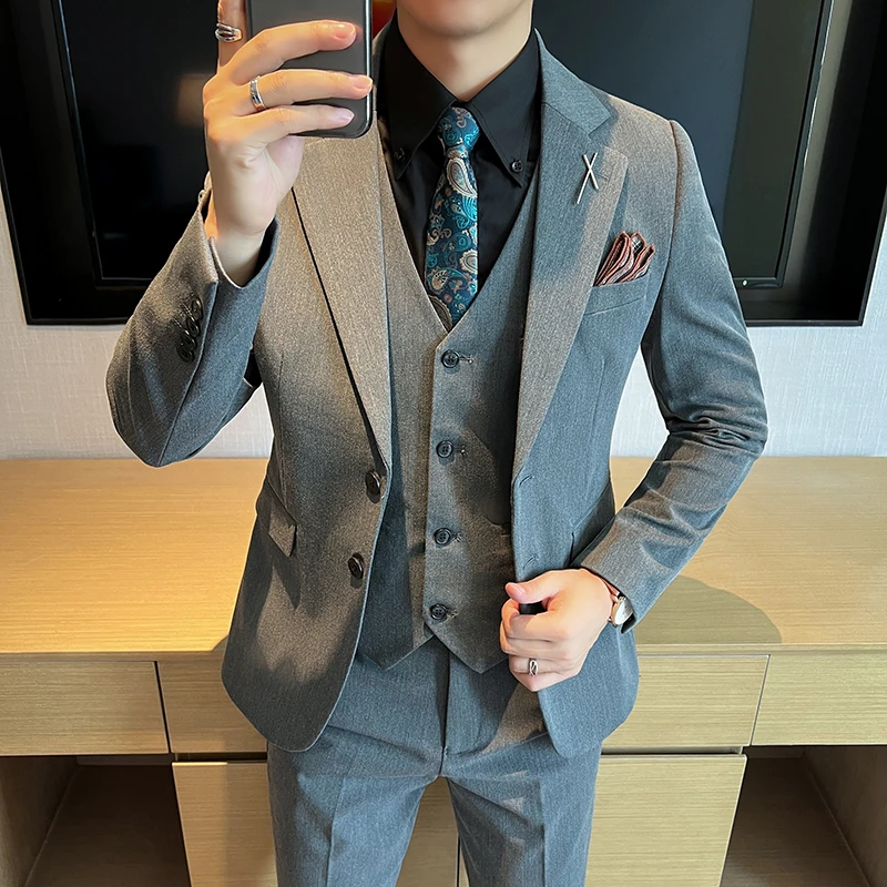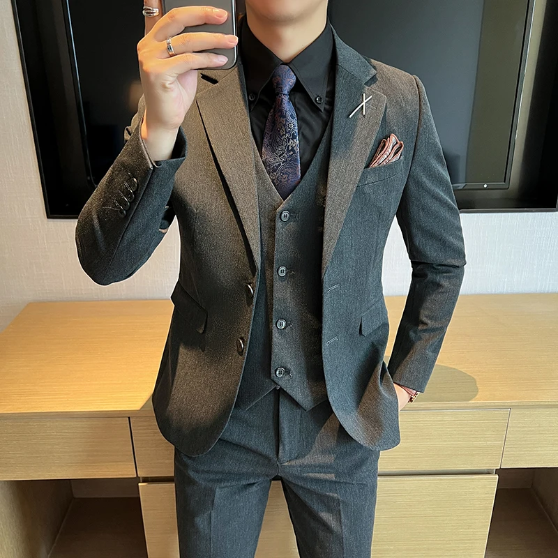 2024 High quality (suit + vest + trousers) Stylish and handsome casual wedding suit Business suit three-piece genuine