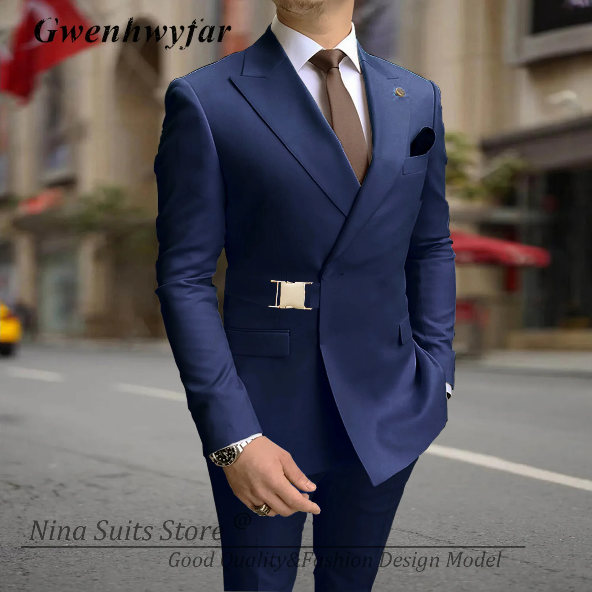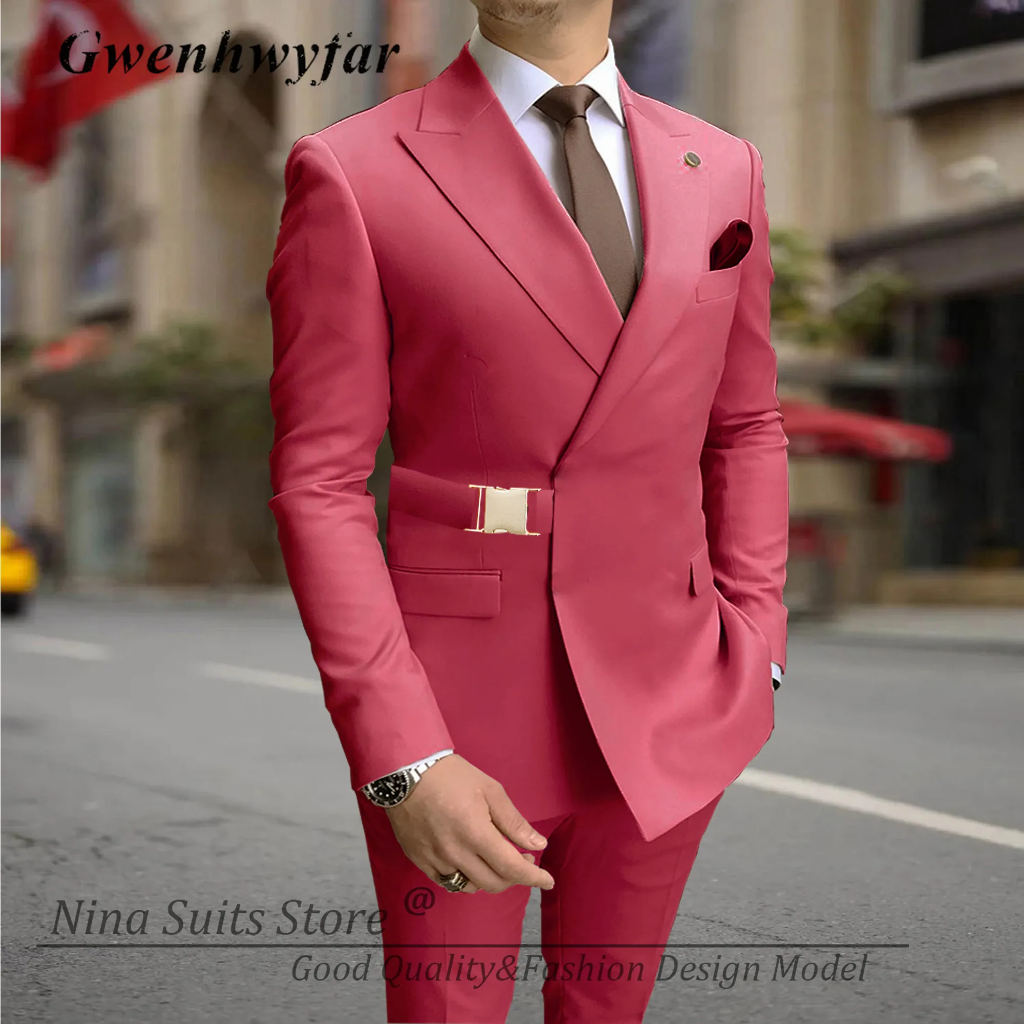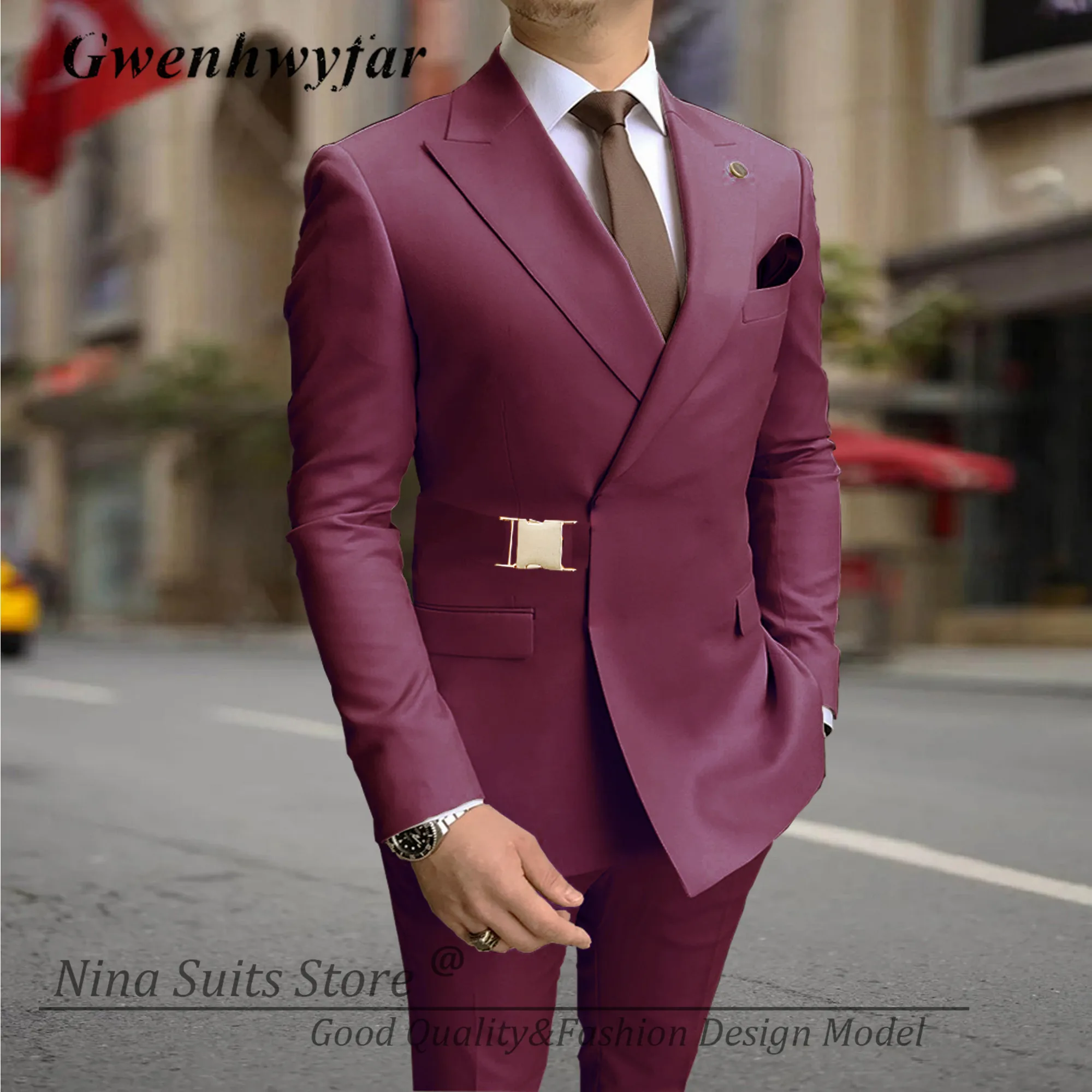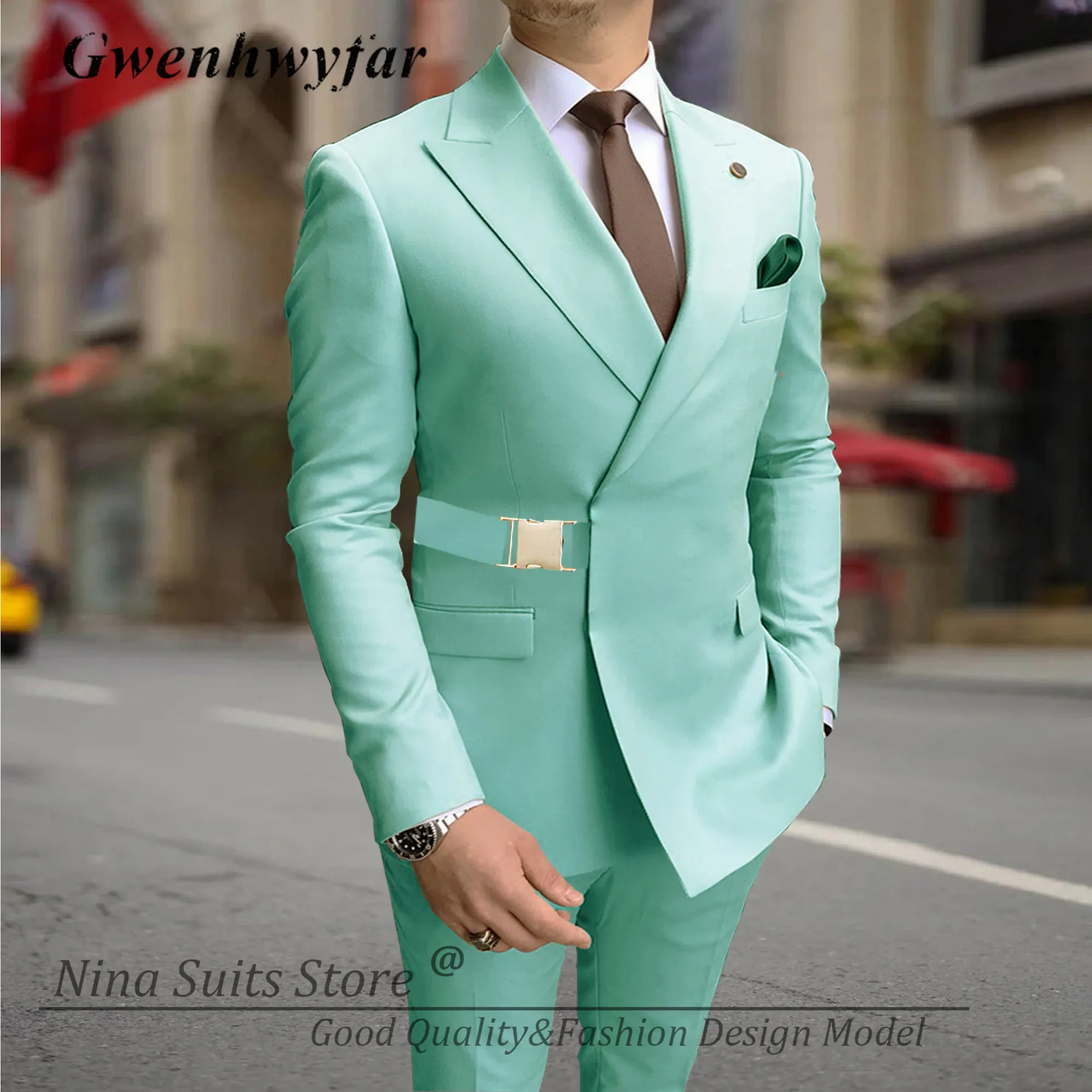 G&N 2023 Men Suits with Gold Metal Buckle Lavender Minte Navy Grey White Black 20 Colors Men's Casual Blazer Pants Set Handmade