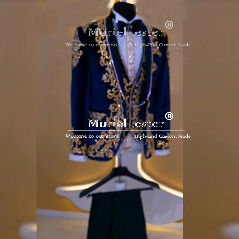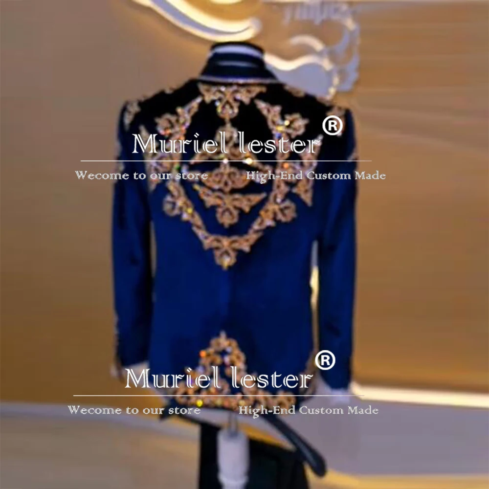 Luxury Groom Wedding Suits Crystals Jewelry Beaded Prom Blazer Customized Man Formal Party Tuxedo 3-Pieces Sets terno masculino