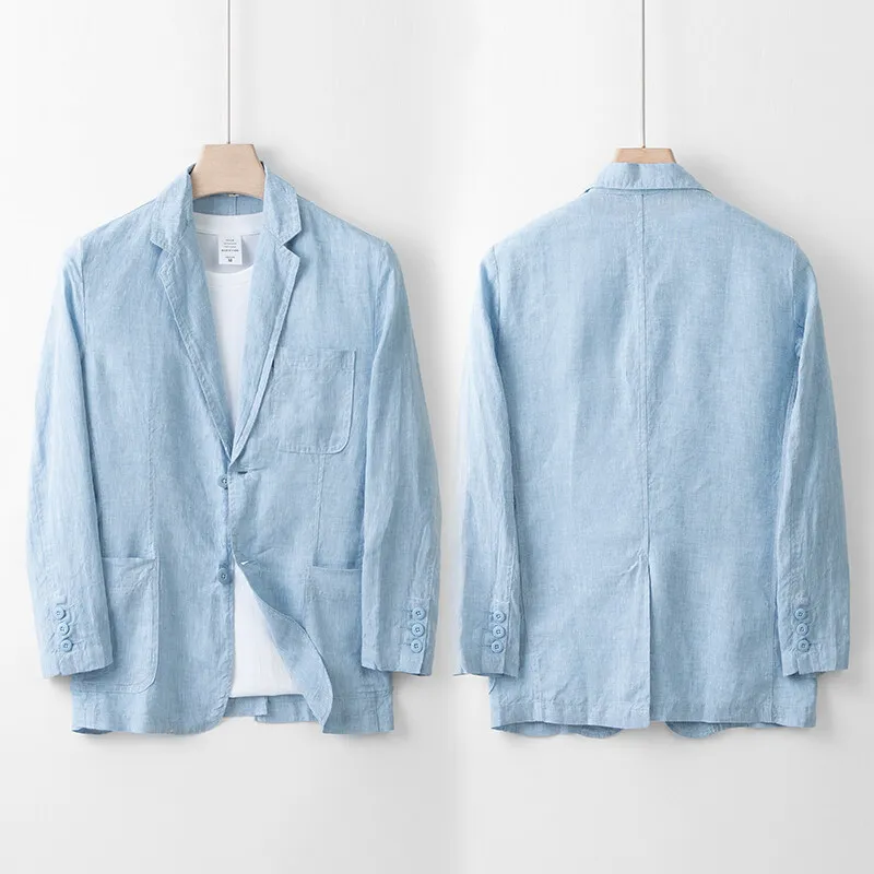 Men's 100% linen suit jacket Men's summer light breathable pure color light luxury leisure suit top
