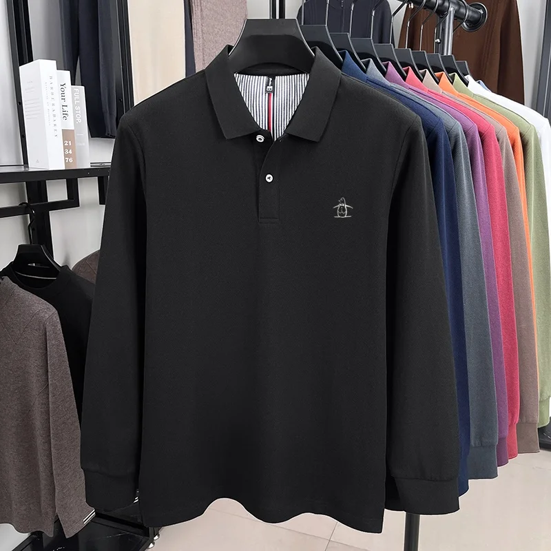 100% High-quality Cotton Latest Men's Polo Long Sleeve Autumn Spring Warm Fashionable Business Casual Cozy Delicate Embossed Top