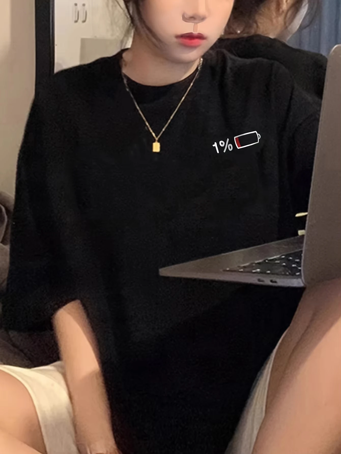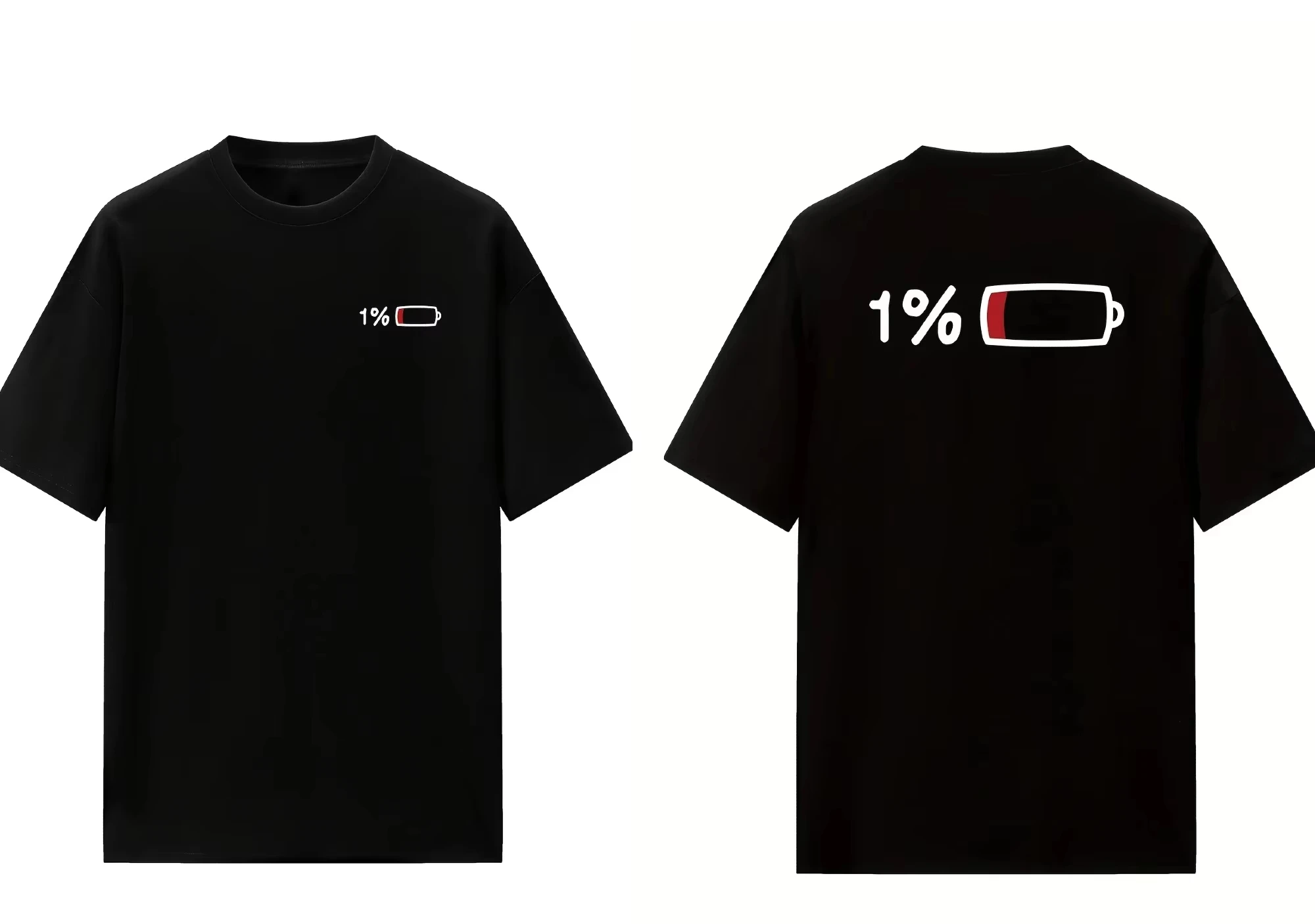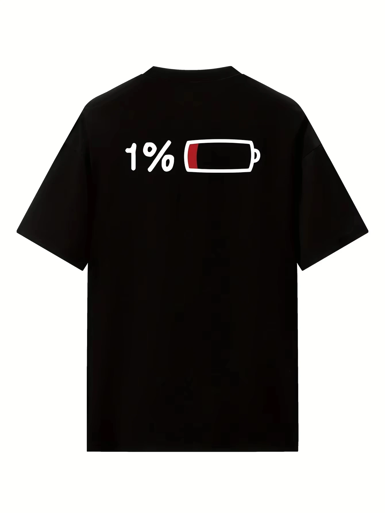 2025 Summer Men's and Women's Summer Casual Elegant Loose Long T-shirt with 1% Battery Graphic Print - Black Round Neck Short Sl