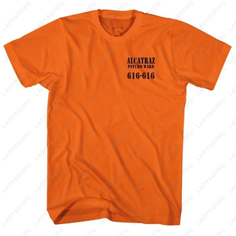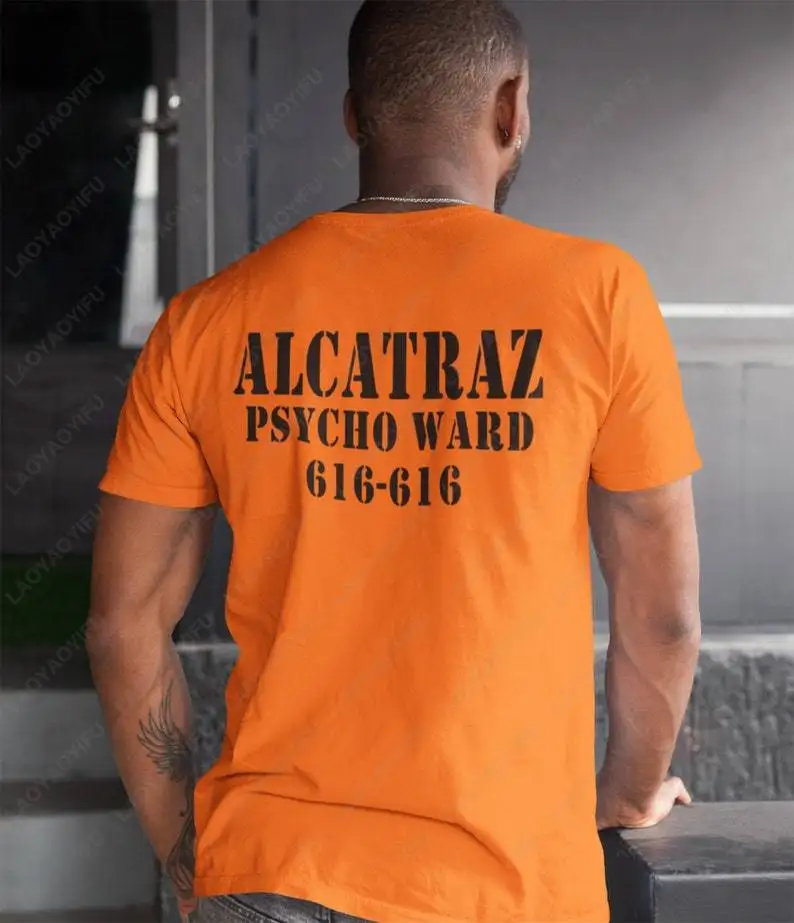 Alcatraz Psycho Ward T-Shirt Prisoner Halloween Orange Tees Costume Halloween Outfit for Men Convict Summer Casual Cotton Tops