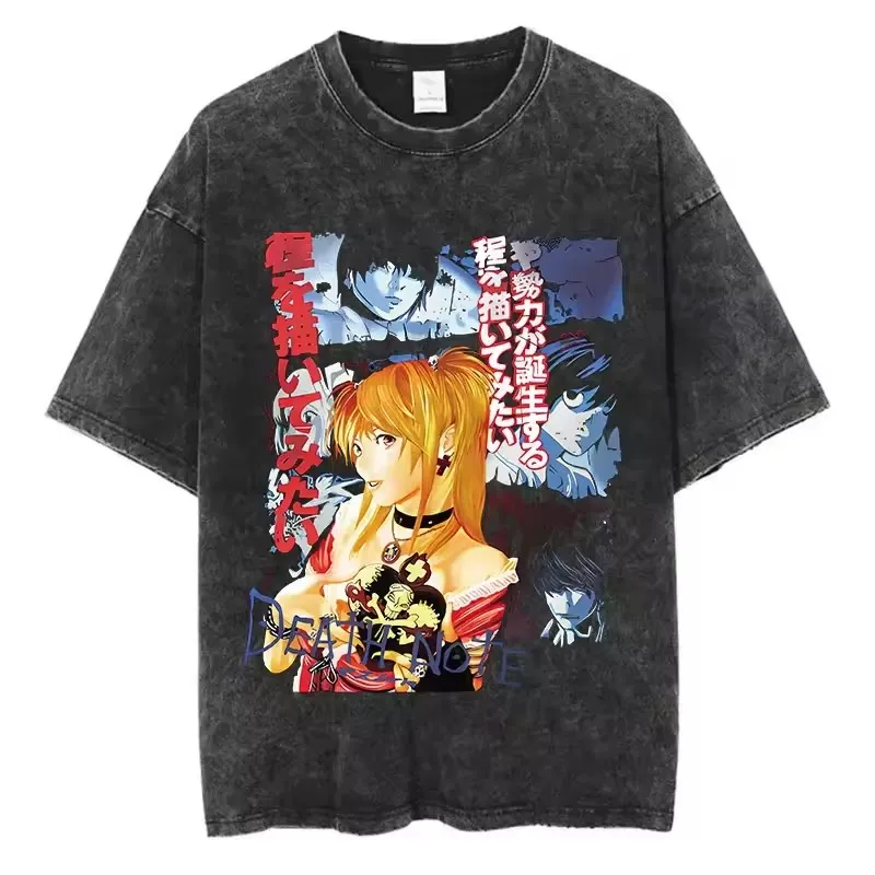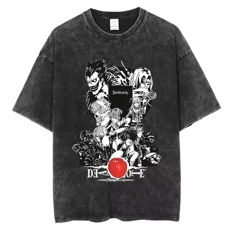 Death Notes Anime Washed Short sleeved round neck Y2k Tshirt Men Clothing New in Top & Tees Mens T-Shirt Camisetas 50830