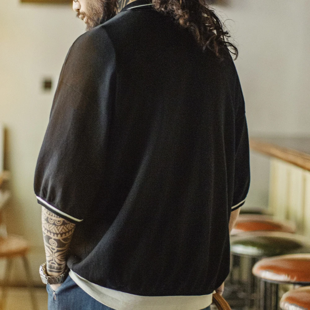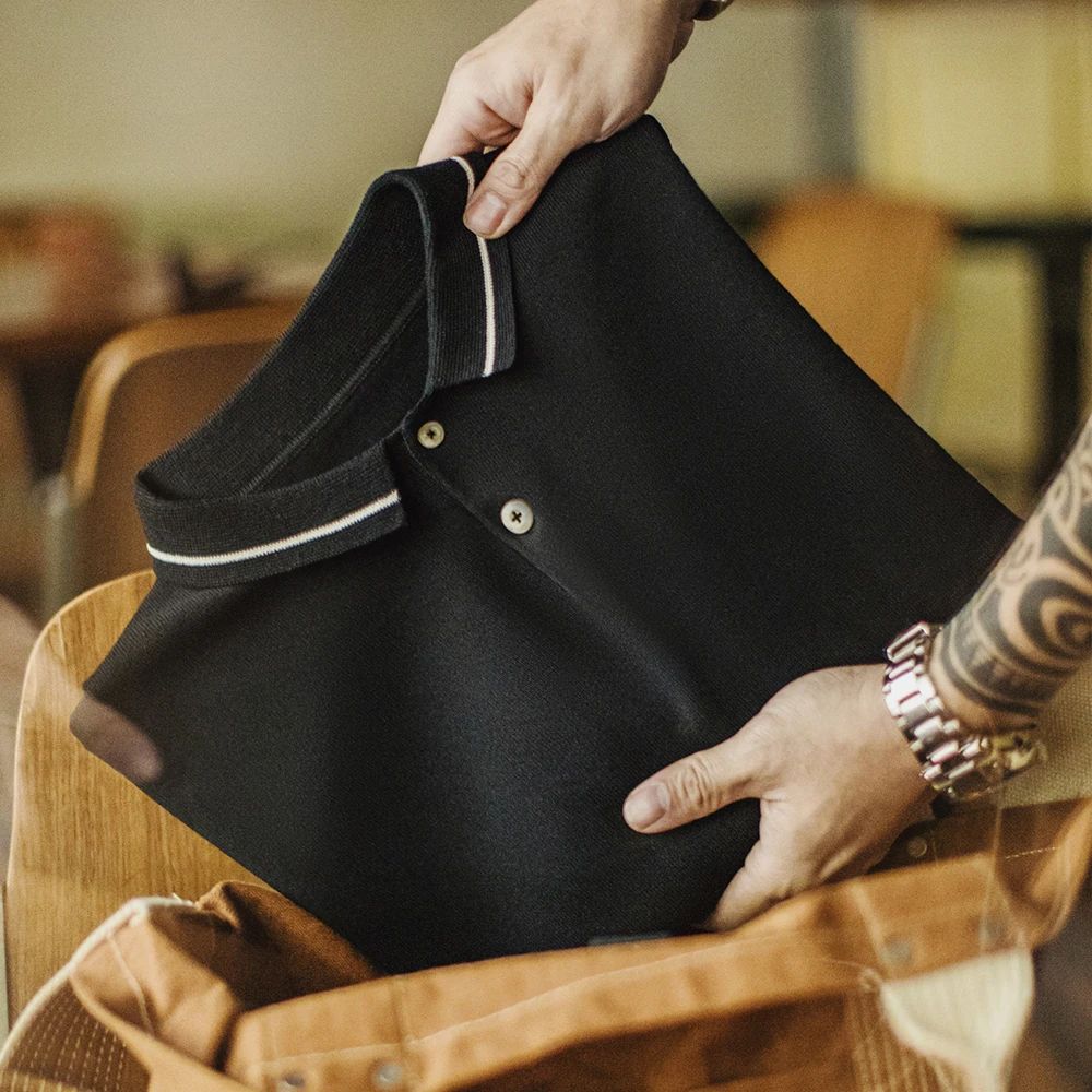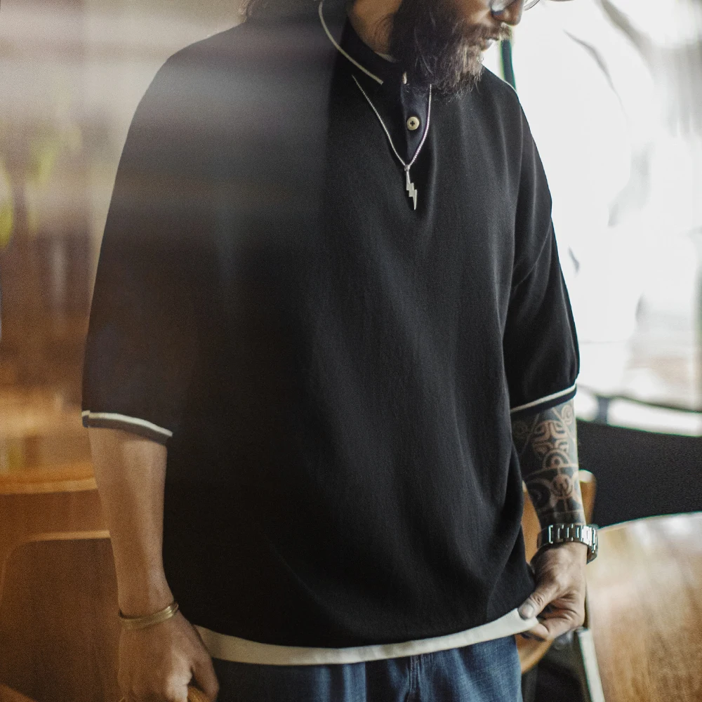 Maden Casual Color-Block Striped Short Sleeve Polo Shirt Men's Summer Black Tee Loose Fit Business Tee Breathable Office Tops