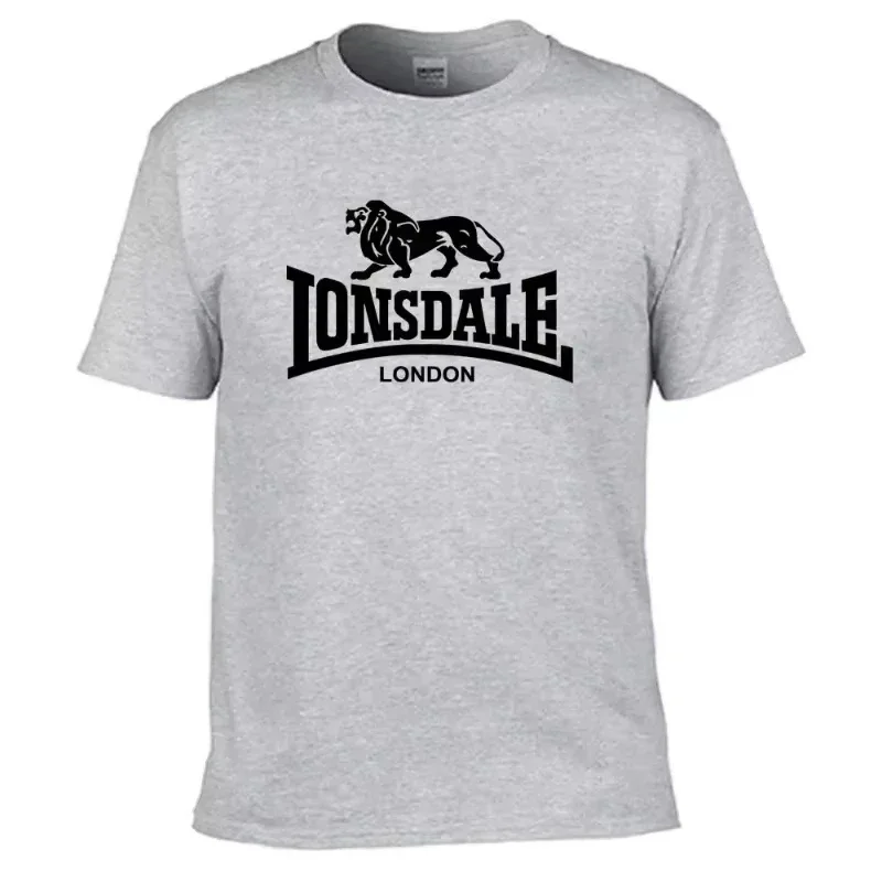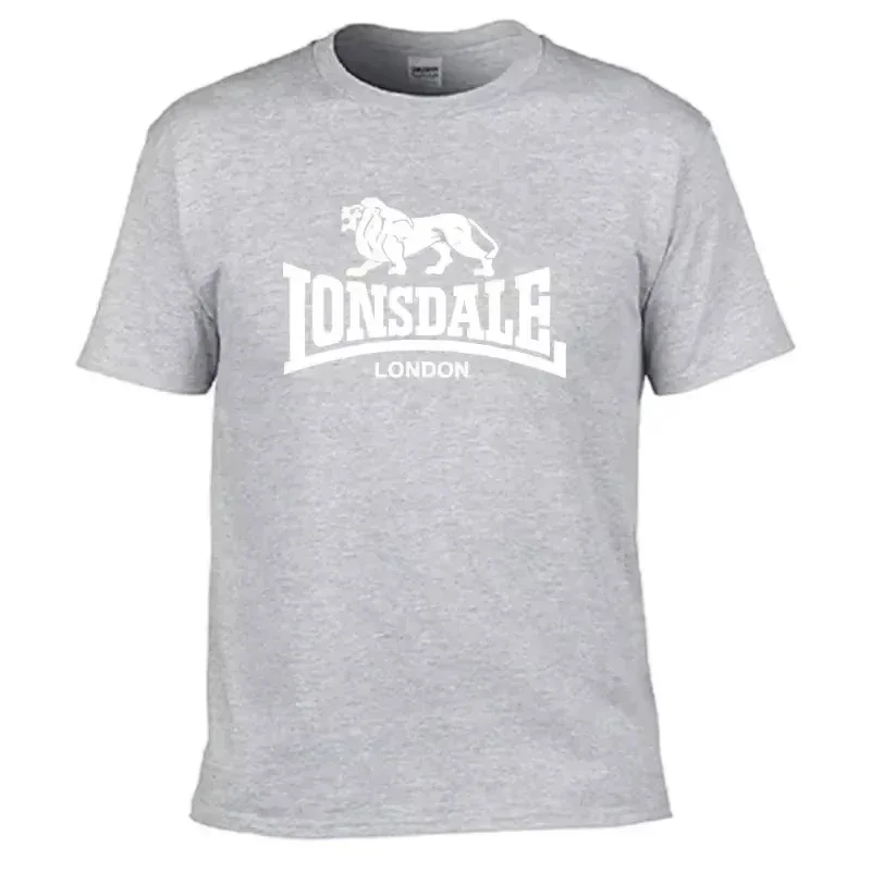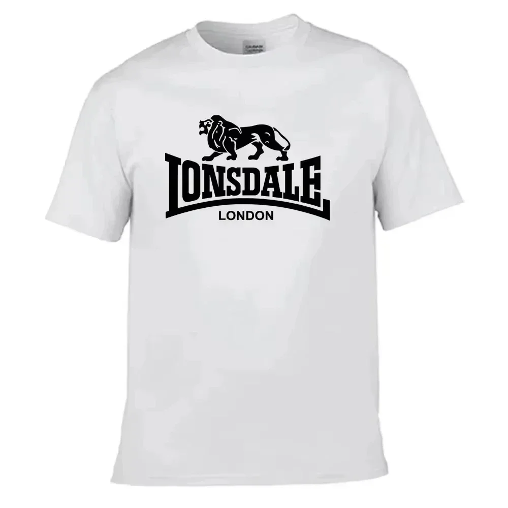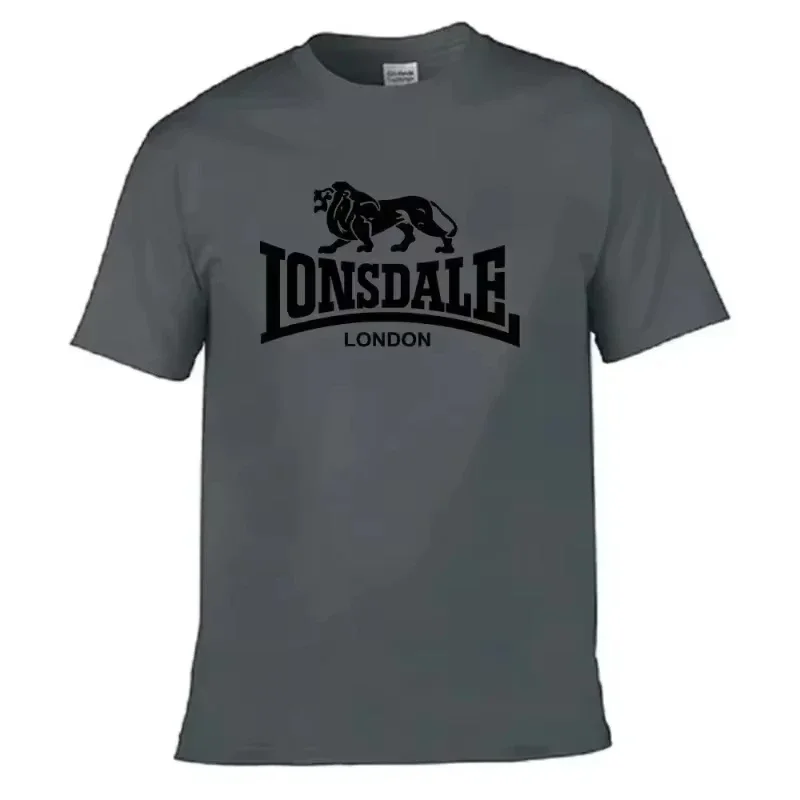 Men's Lion Lonsdale Print Short-Sleeve T-Shirt, Summer Loose and Comfortable Pure Cotton Street Style Oversized