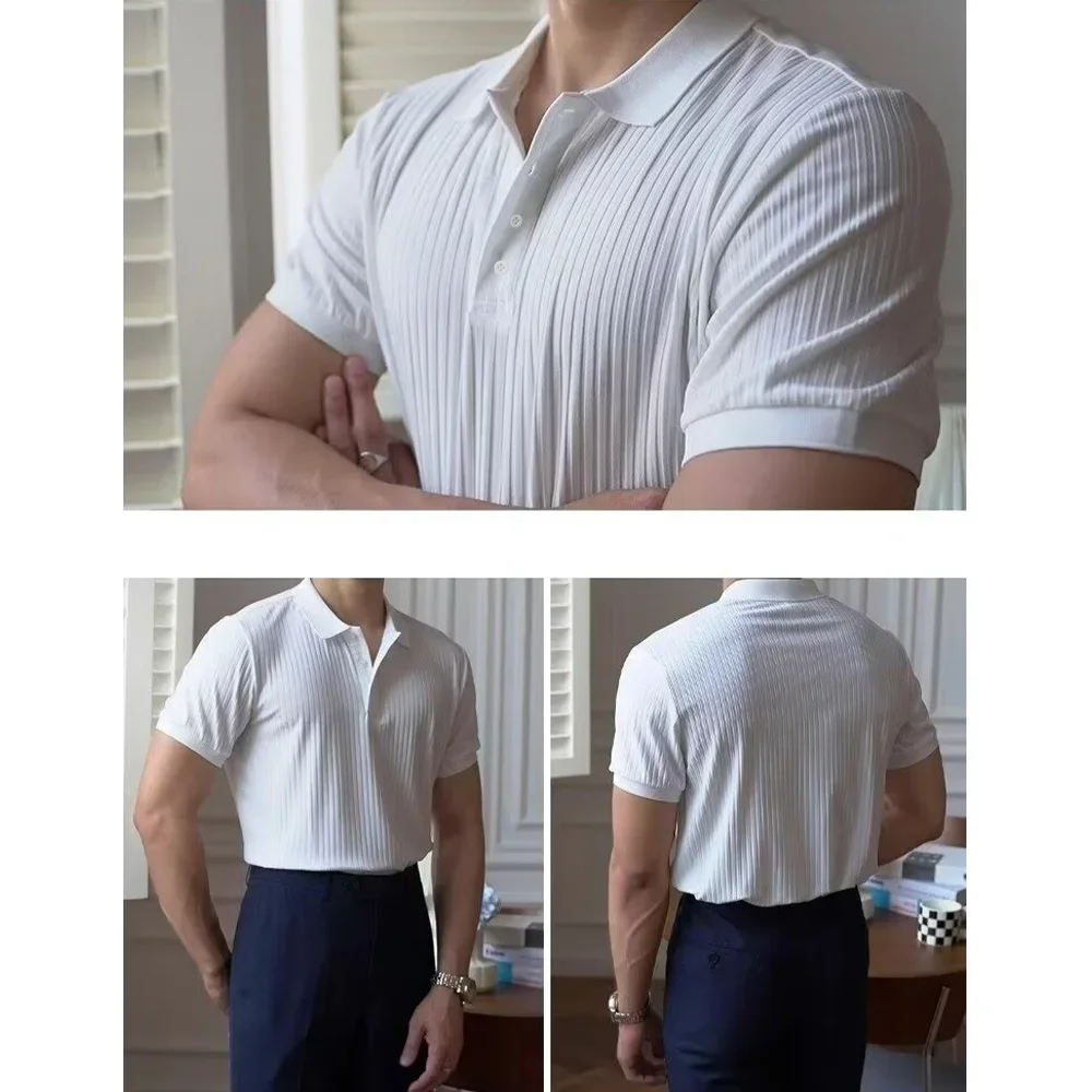 Men's Summer Short-sleeved Polo Slim Casual Sportswear Hundred Stretch Buttons Korean Fashion T-shirt Men's Tops