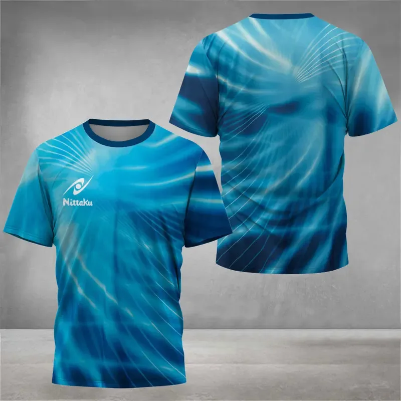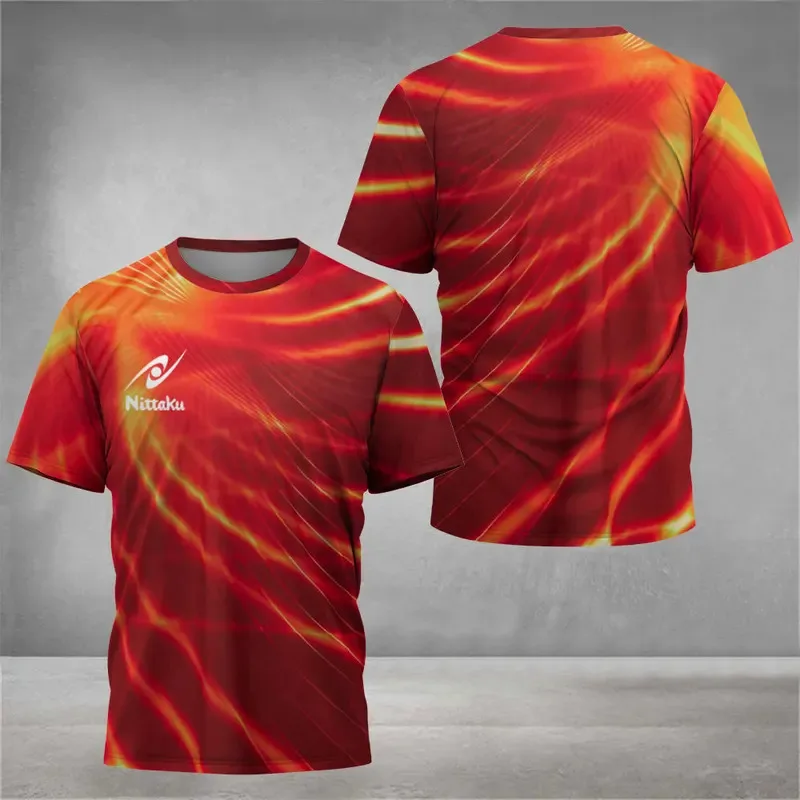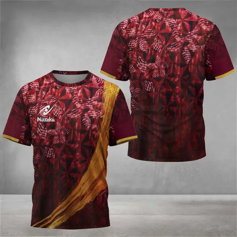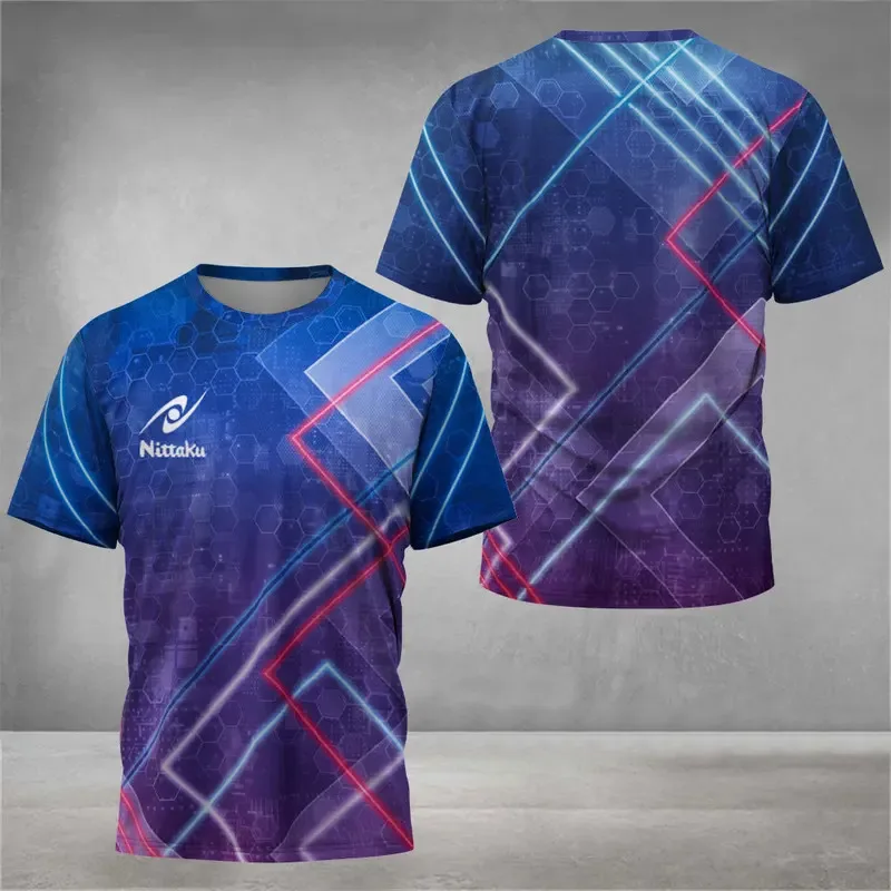 Men's table tennis T-shirt with cute digital prints, summer sports table tennis T-shirt, training quick-drying T-shirt