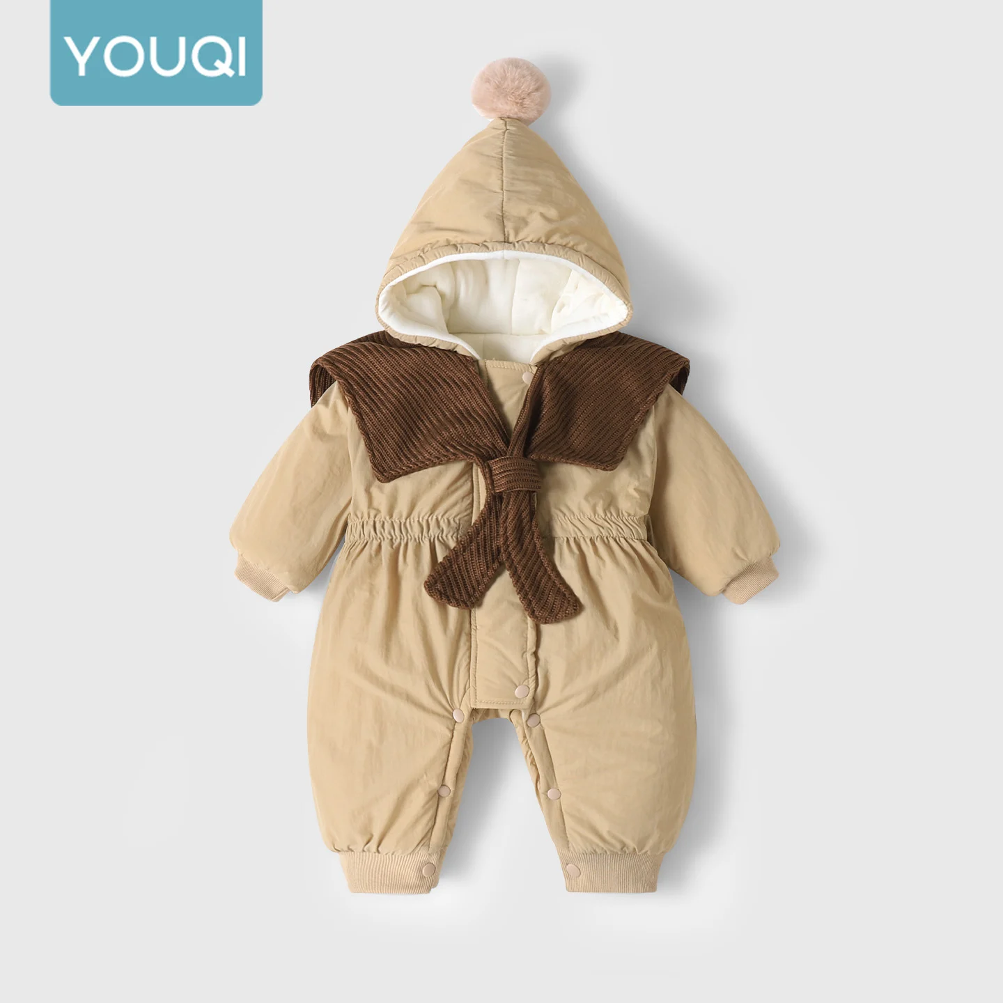 【Youqi】Chinese 0-2 Year Old Baby Clothes Winter Clothing Baby Cotton Jacket Winter Style Fleece-Lined Warm Padded Hooded Windproof Children's Coat